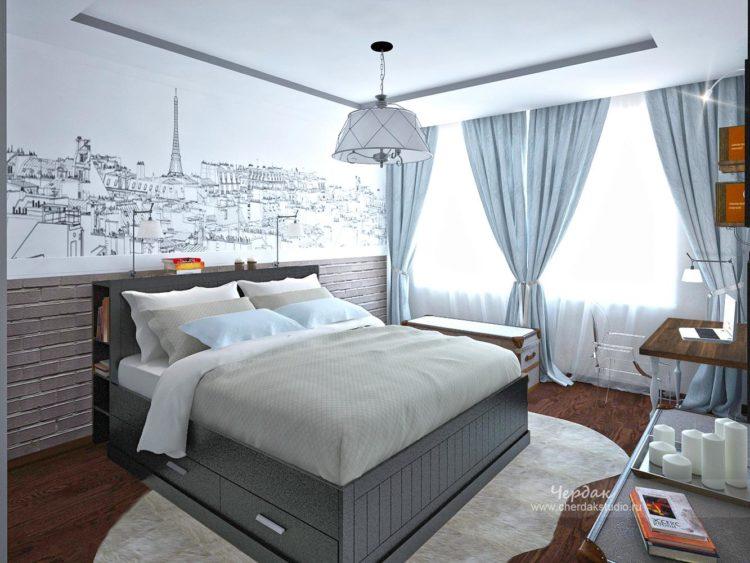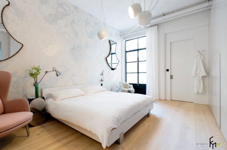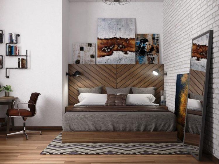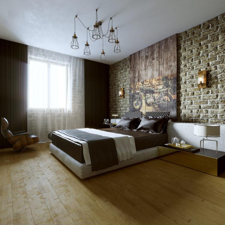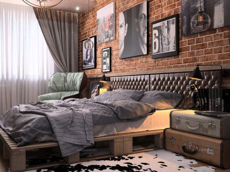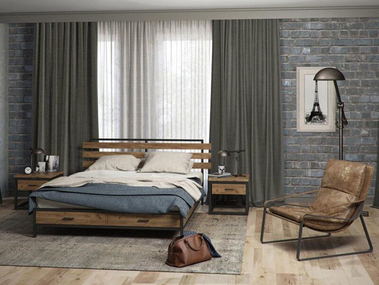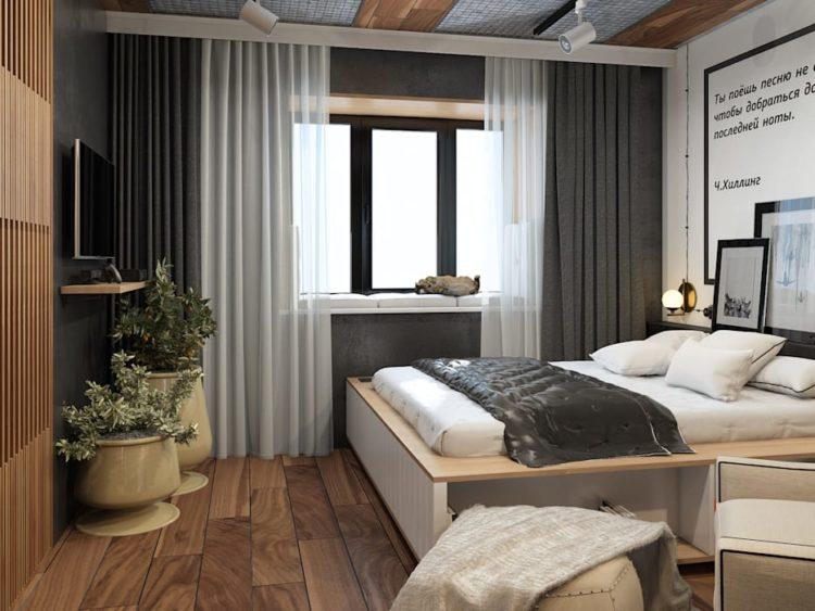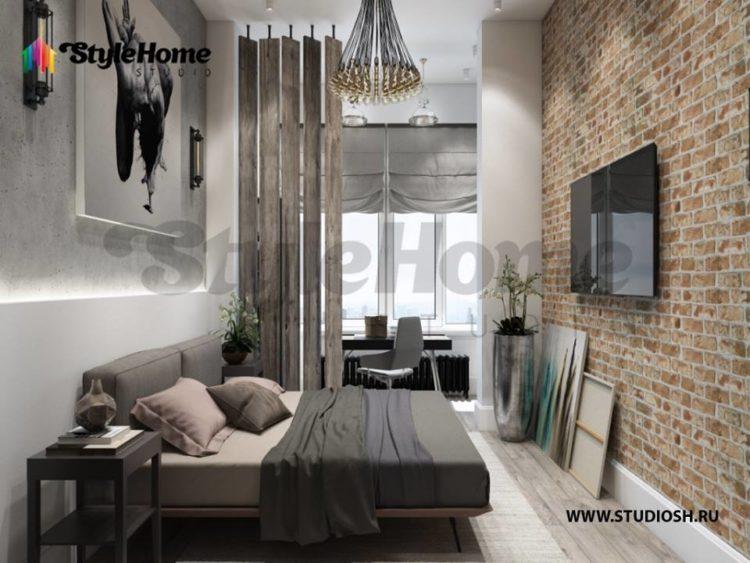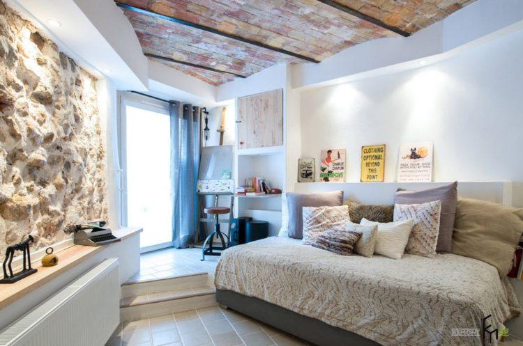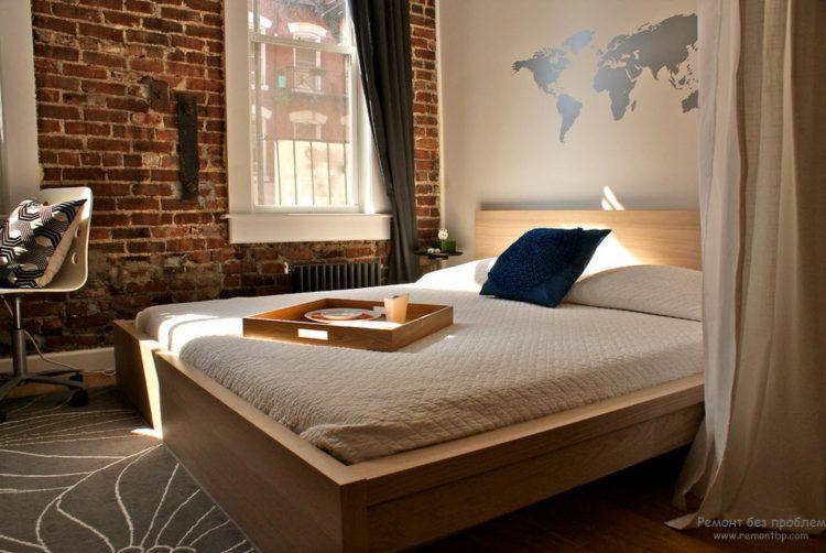 El estilo loft brillante en el dormitorio, cuya foto se presenta a continuación, es la clave para un ambiente relajante, tranquilo y apacible.