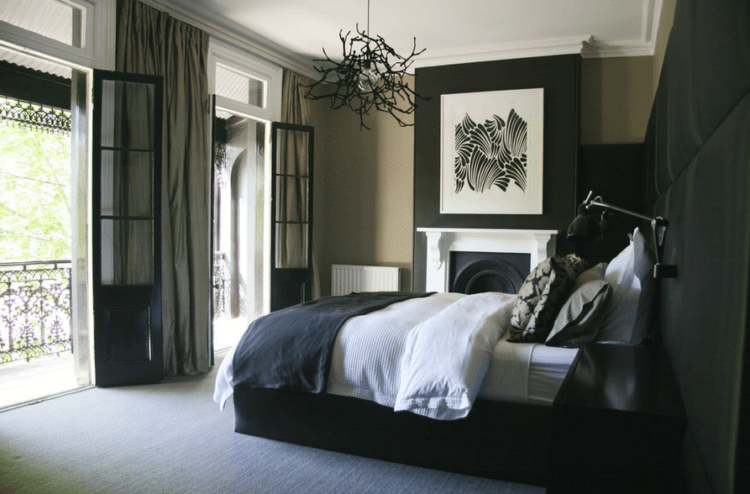 Dormitorios hechos en colores oscuros: esto no es para nada sombrío, como muchos creen. Tales tonos son un excelente fondo para otros acentos de color y crean una composición verdaderamente armoniosa.