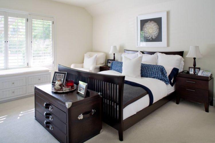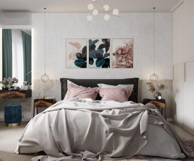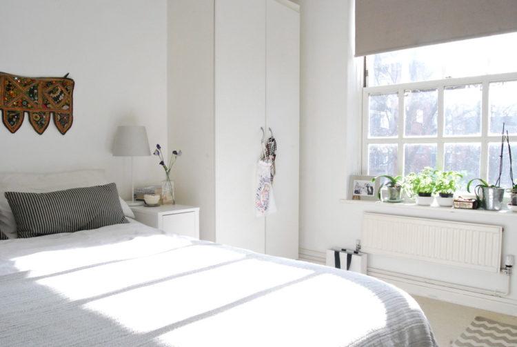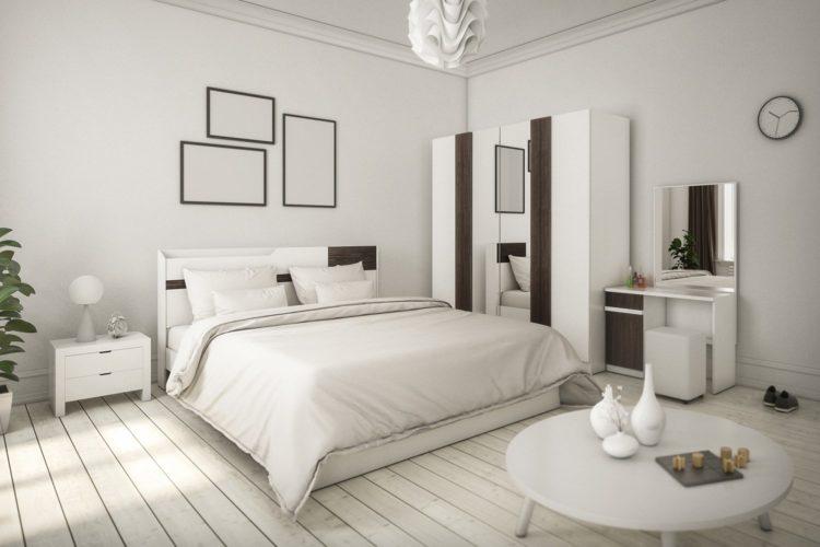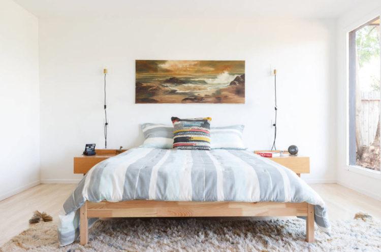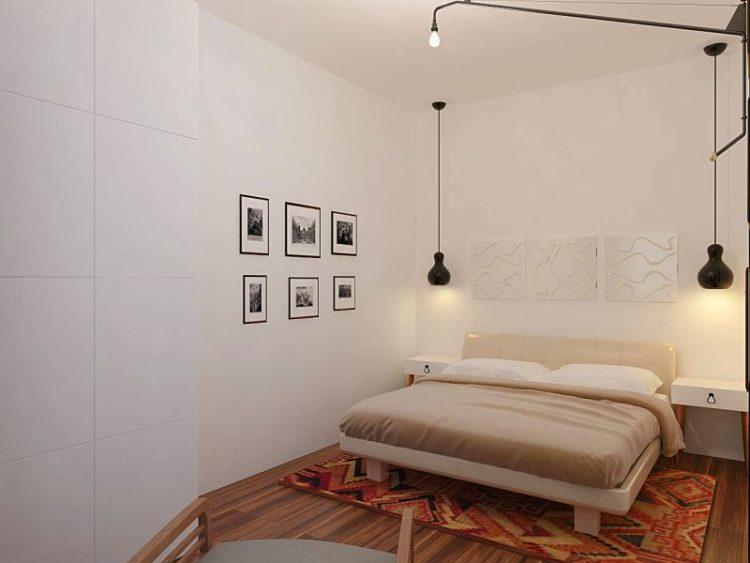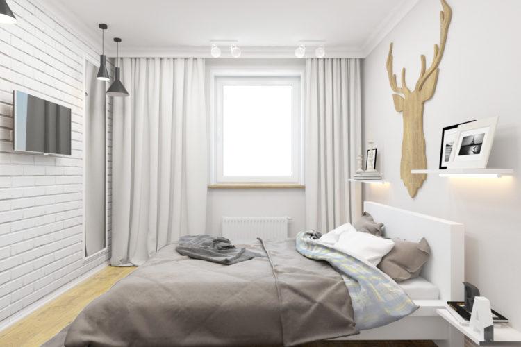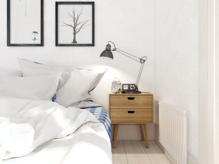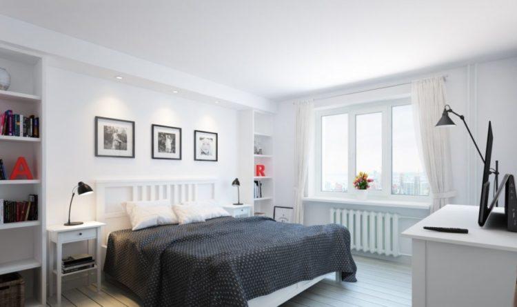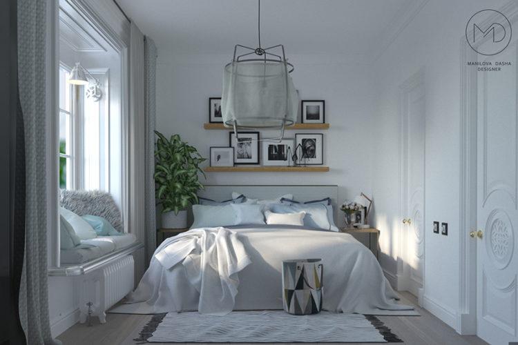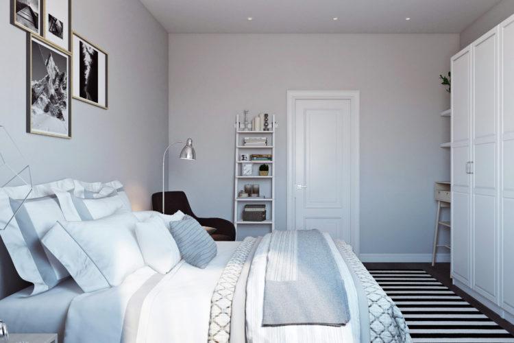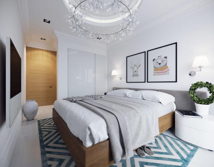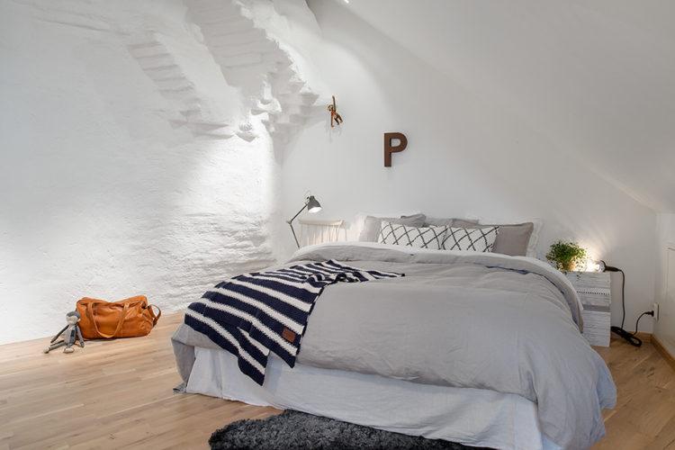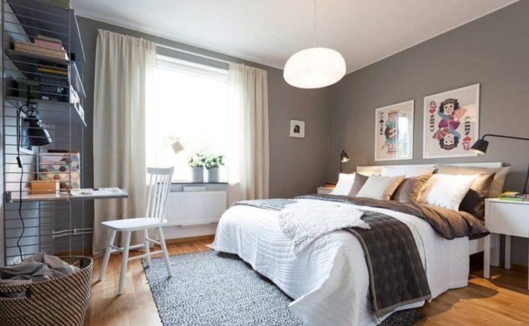 Las paredes blancas y los hermosos muebles en delicados colores naturales aumentan visualmente el espacio en la habitación. Pero la preferencia por colores tranquilos no significa en absoluto que la habitación o sala de estar escandinava se verá aburrida o carente de energía. Se pueden enfatizar muchos detalles interiores, como alfombras, ropa de cama, obras de arte, diversificando así el dormitorio sobrio en colores brillantes.