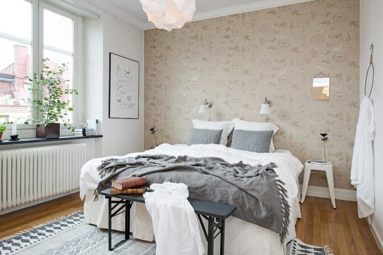 Puede diversificar las paredes claras pegando papeles pintados de su elección en un lado en la cabecera de la cama, esto le dará un manjar especial. Vea el diseño del dormitorio estilo escandinavo y la sala de estar del dormitorio en estilo escandinavo, elija la mejor opción para usted, puede en las fotos enviadas.