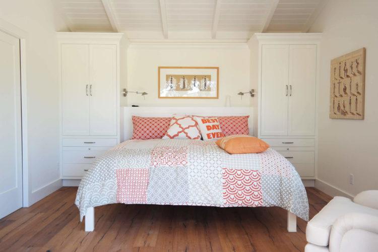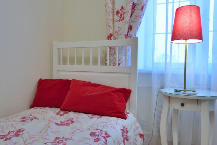 La cama de estilo escandinavo se puede distinguir con colores brillantes, o más bien la ropa de cama en el estilo escandinavo. La colcha y las almohadas se verán igualmente hermosas en colores pastel o con varios patrones y detalles de rojo y otros colores.
