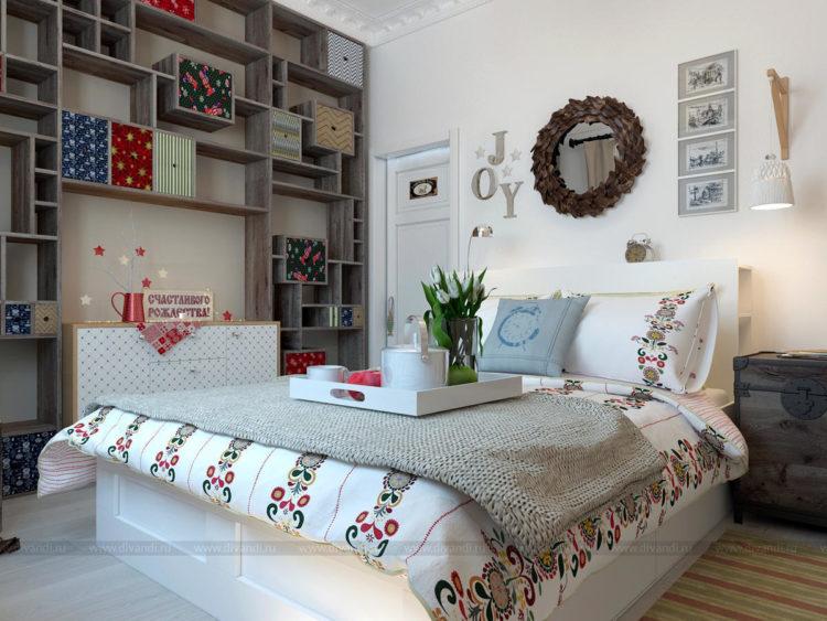 El estilo escandinavo en el dormitorio implica la elección correcta del color de fondo. A menudo, el diseño de la habitación está hecho en colores brillantes.