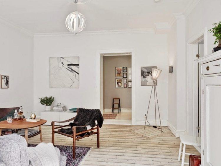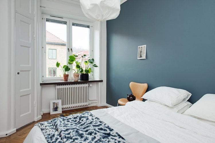 Al elegir los detalles interiores de una habitación, siempre es apropiado complementar una habitación espaciosa y luminosa con colores más pesados. A pesar del hecho de que el estilo escandinavo de la habitación rara vez usa colores oscuros, se pueden elegir elementos como pinturas, figuras, lámparas y mucho más en colores más oscuros.
