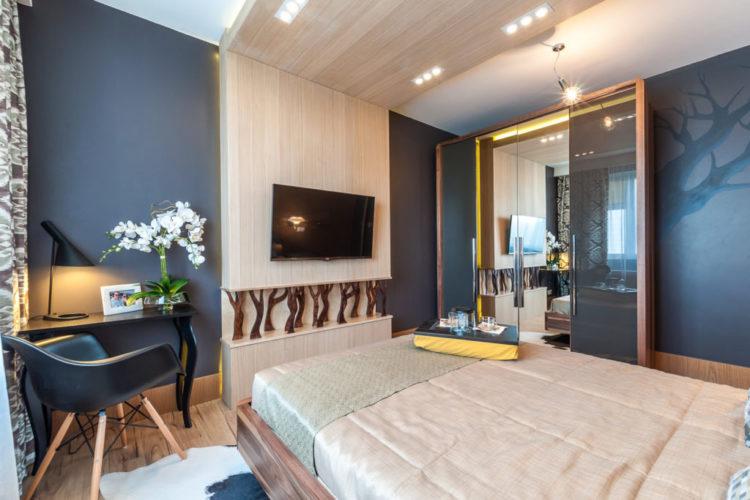 El color negro enfatiza favorablemente las características arquitectónicas de su habitación, que pueden perderse en el fondo claro de la habitación.