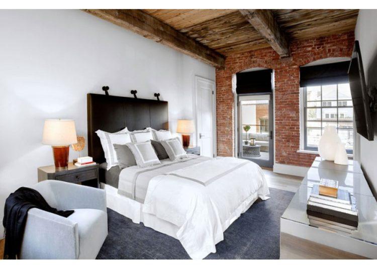 El loft blanco se ve muy majestuoso y elegante, a pesar de la tarea inicial de dar el estilo de negligencia.