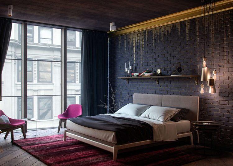 El diseño oscuro de la habitación en el estilo loft es el más clásico: es elegante, creativo y audaz.