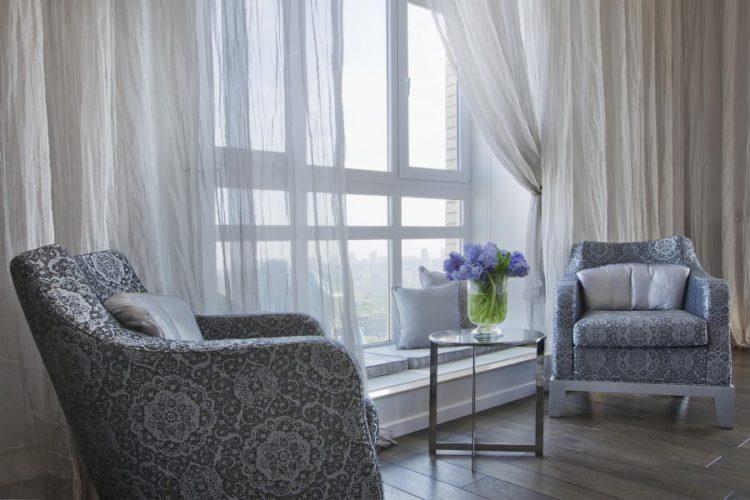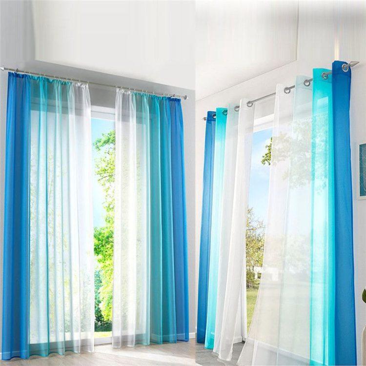 Las cortinas de tul más comunes y versátiles en colores claros, que dependiendo de la posición de la ventana y el diseño general se ven hermosas en versiones cortas y largas.
