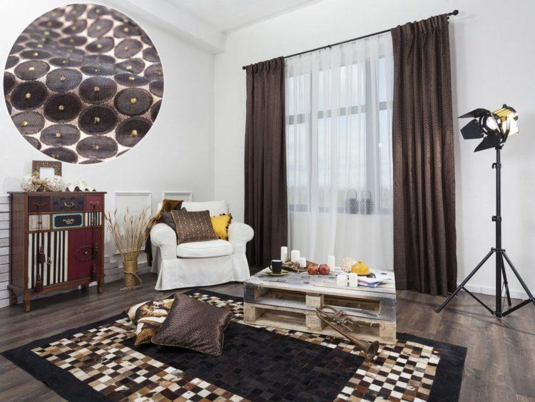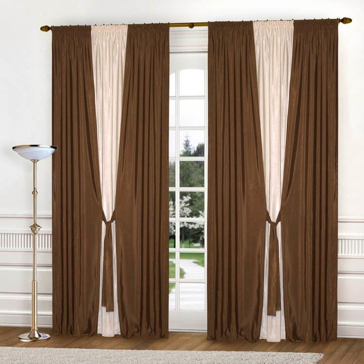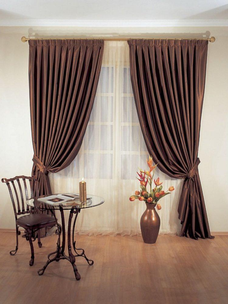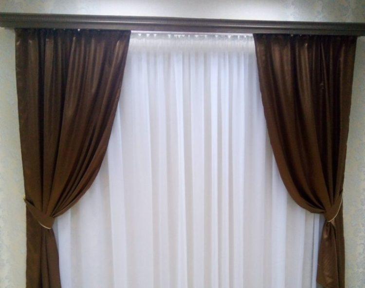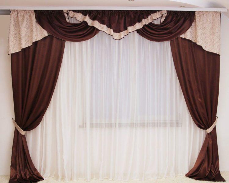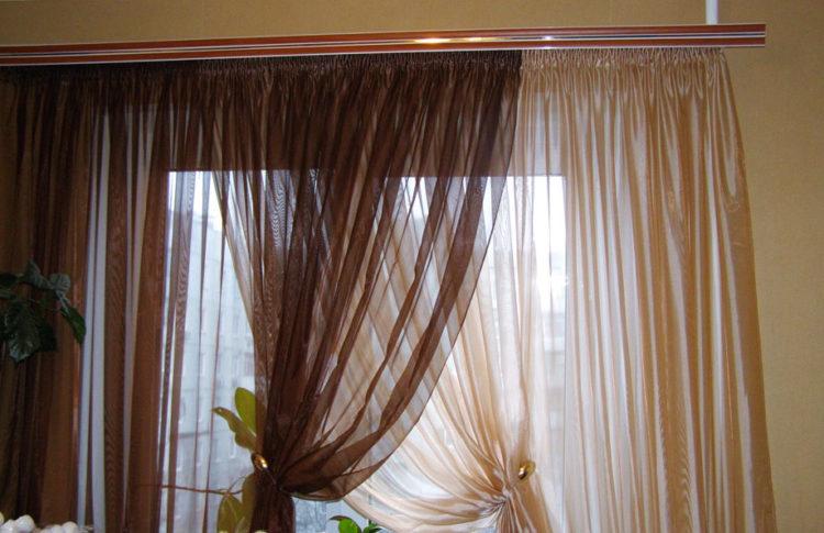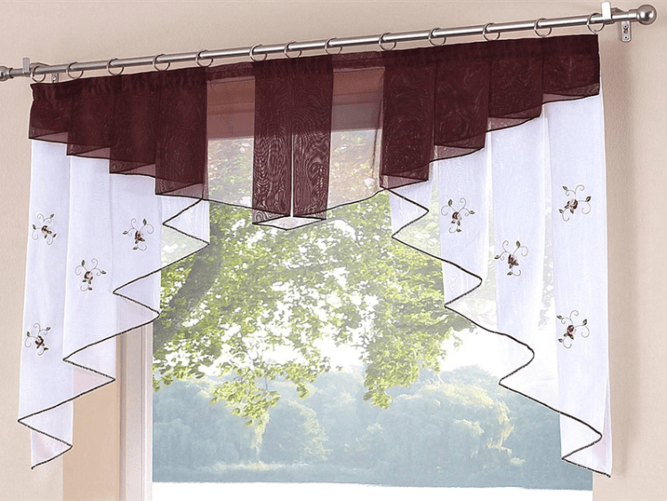 En el interior de la cocina en tonos marrones, será muy apropiado un tul transparente de tonos marrones o un tul claro en las ventanas con un adorno marrón pronunciado.