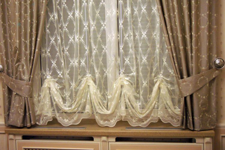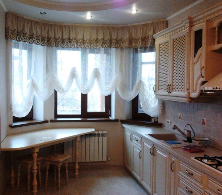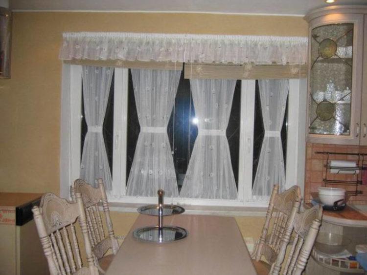 El tul beige en la cocina (foto) complementará casi cualquier diseño. Las cortinas de este color le dan a la habitación una sofisticación especial y discreción.