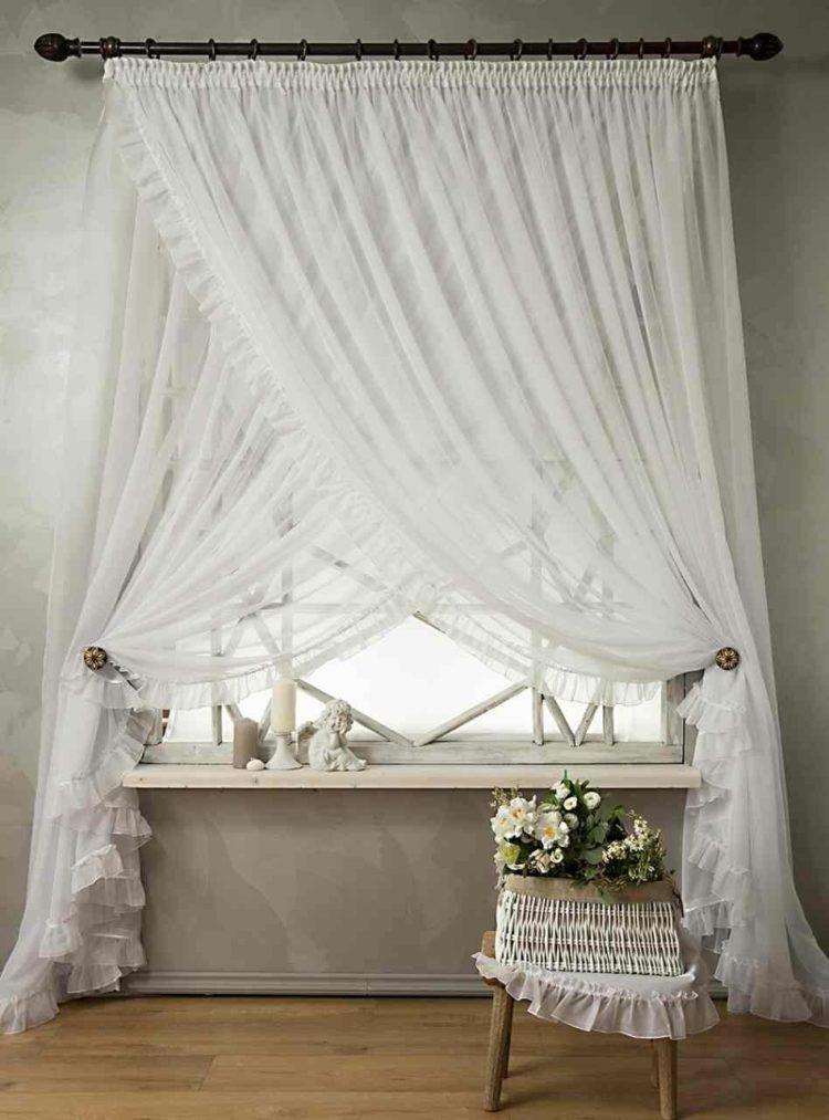 Una cortina blanca para la cocina, corta o larga, se adapta perfectamente a cada decoración interior, al tiempo que amplía visualmente la habitación y le da una ligereza relajada.