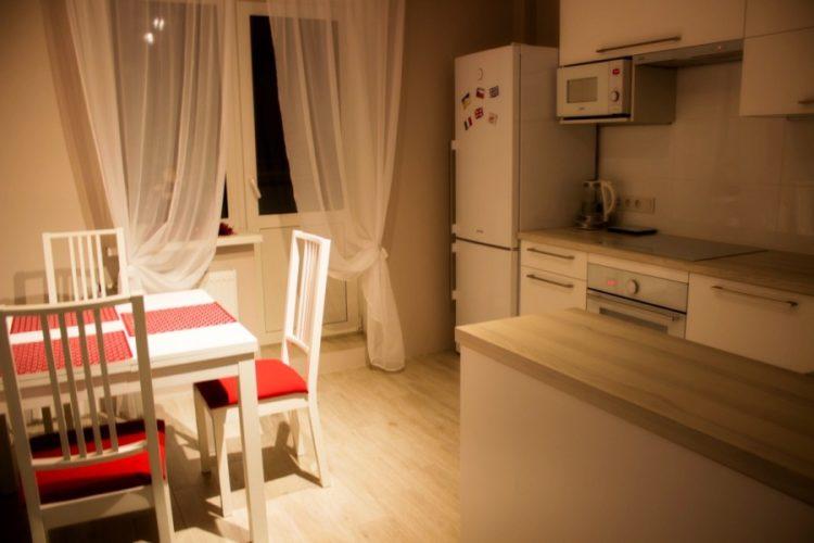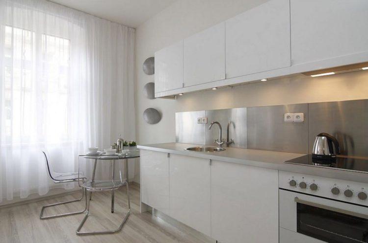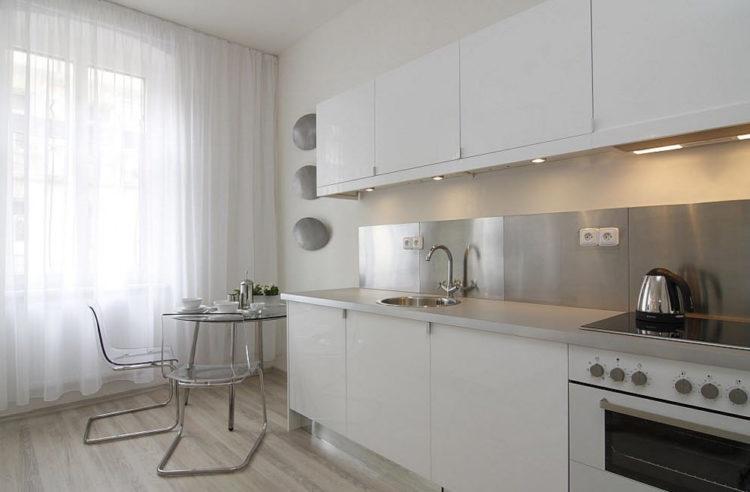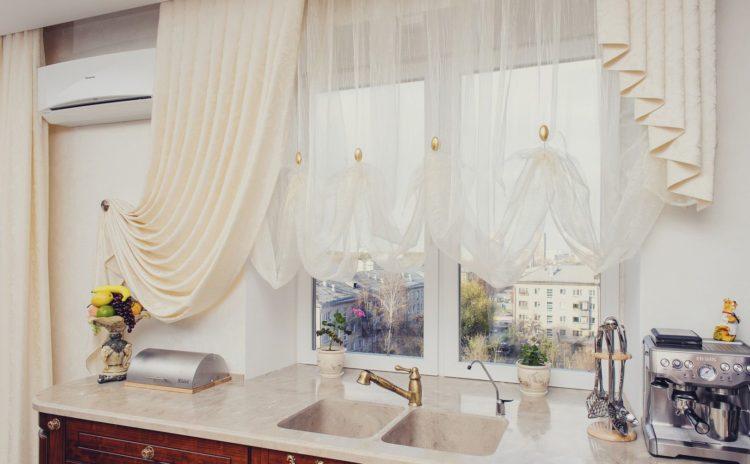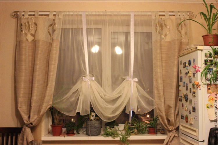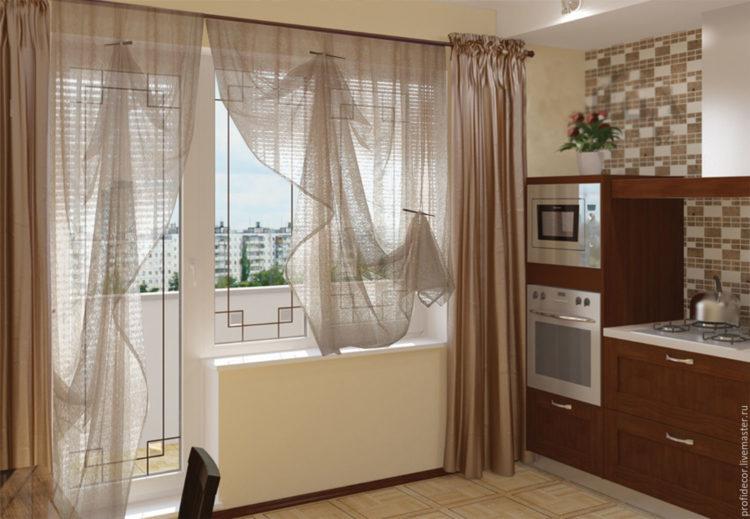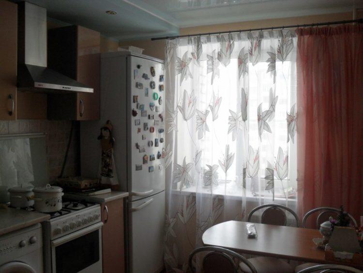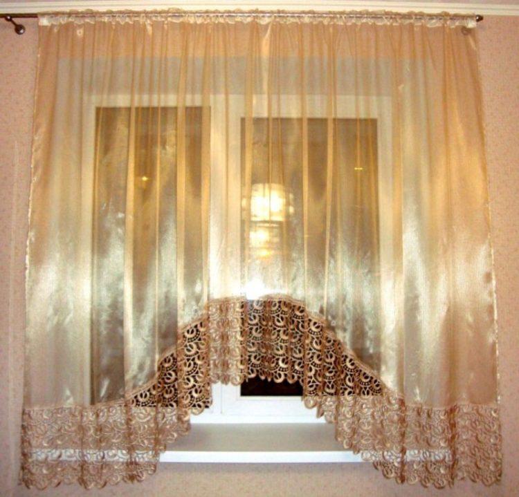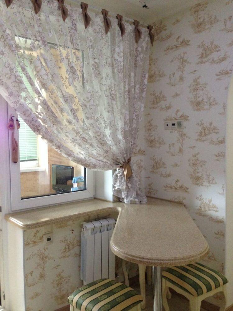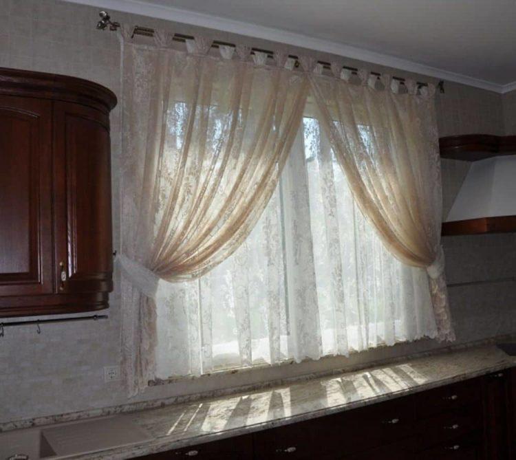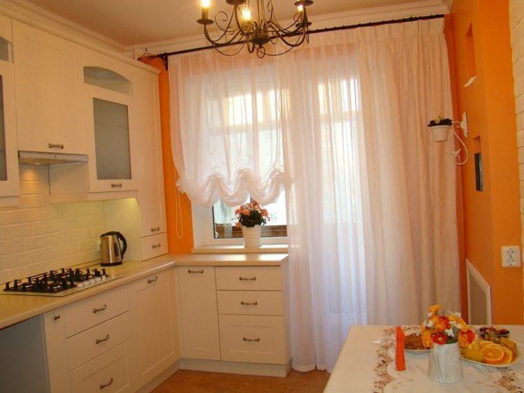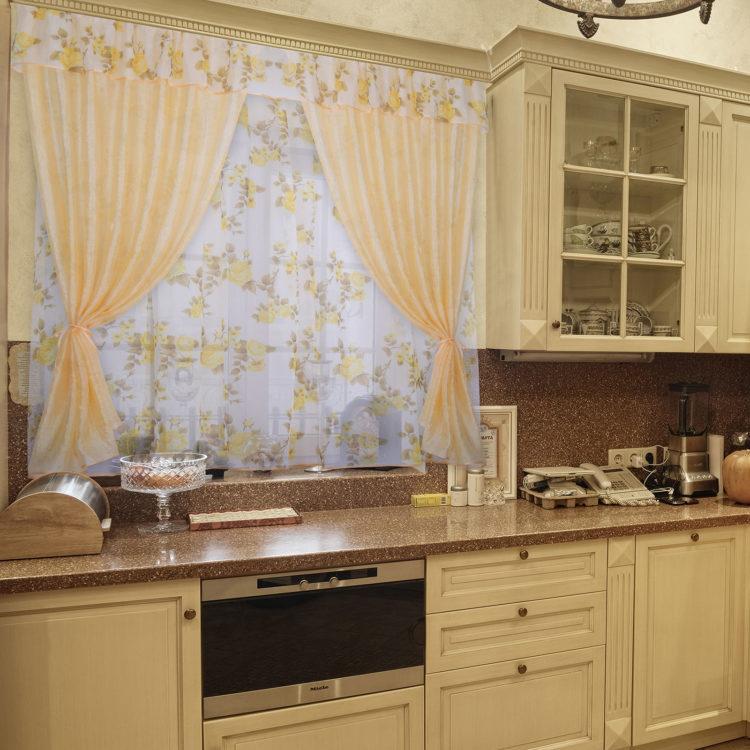La solución ideal para un área pequeña será tul de color beige en la cocina, fotos en el interior, presentadas a continuación, confirmación de esto.