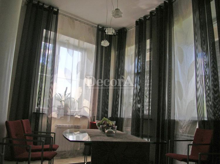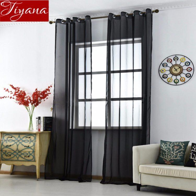 Si combina el tul negro con otros colores de tela correctamente, obtendrá una solución muy inusual y elegante. Las fotos a continuación de tul en la cocina en negro confirman esto.