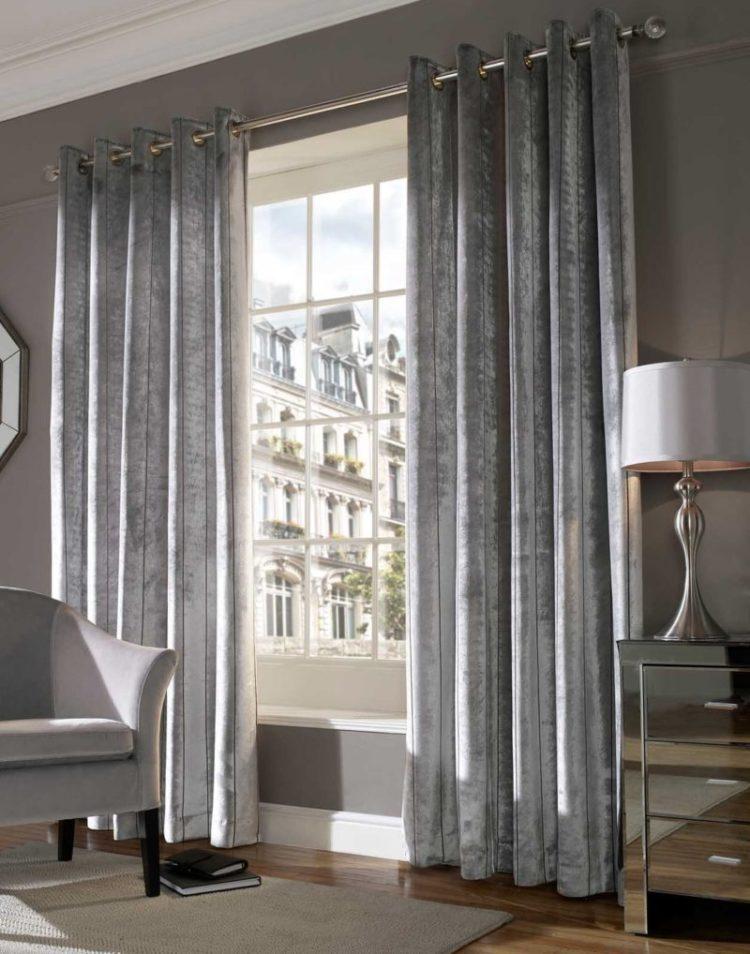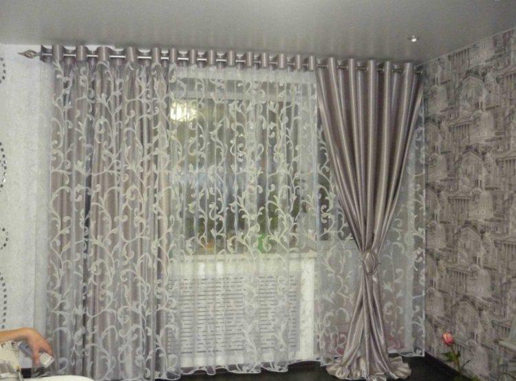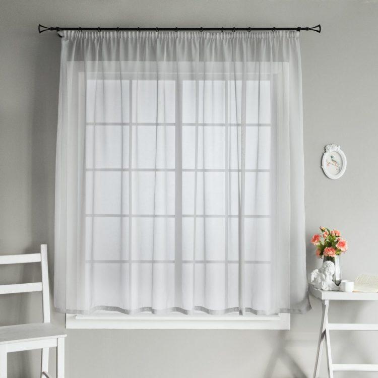 En gris, el arco de tul para la cocina se verá hermoso y elegante. Si no sabes cómo colgar un tul en la cocina, las fotos a continuación te ayudarán con esto, y puedes decidir si te gustan los colores grises en el interior de la cocina.