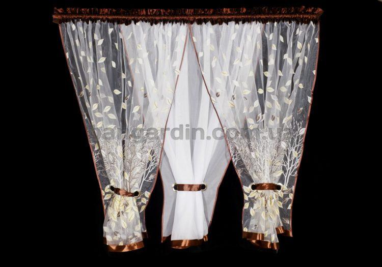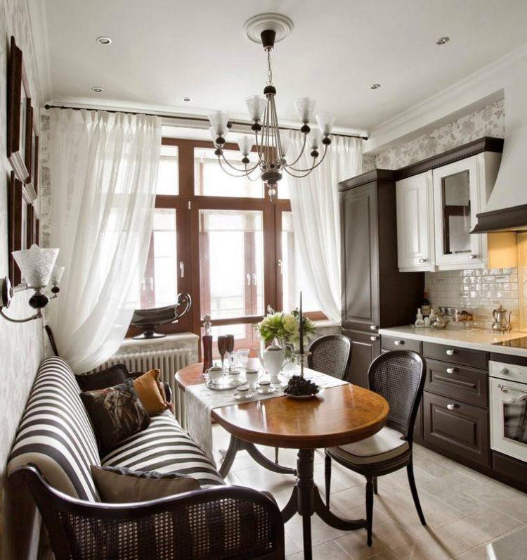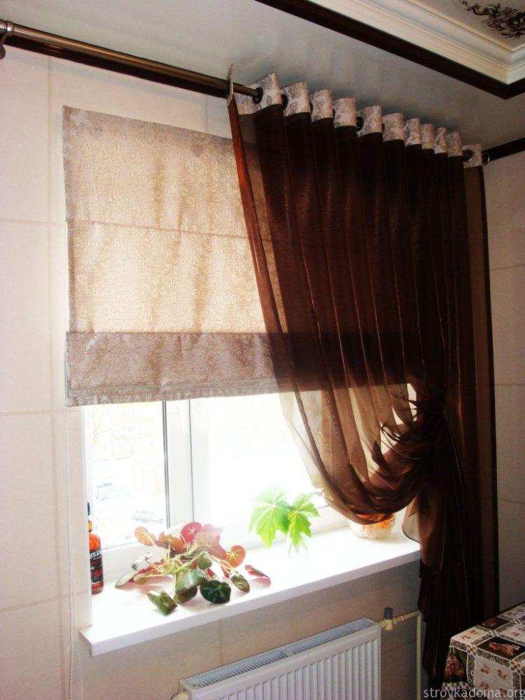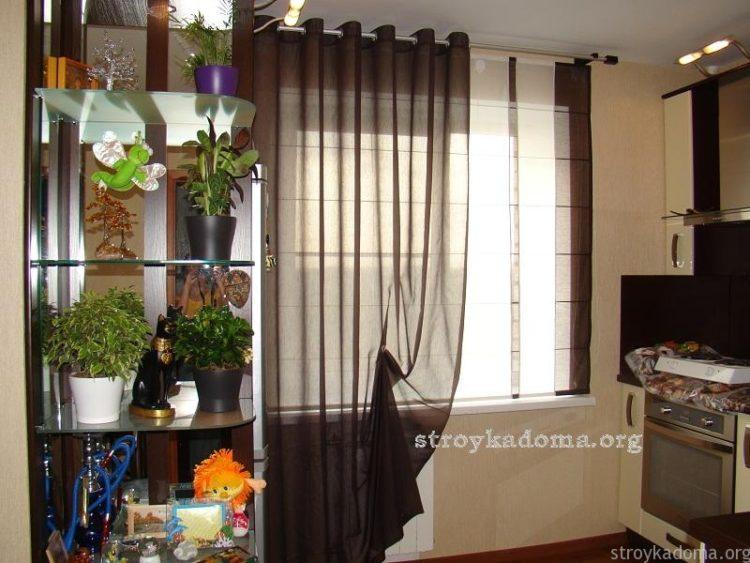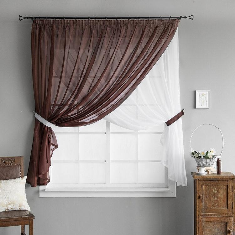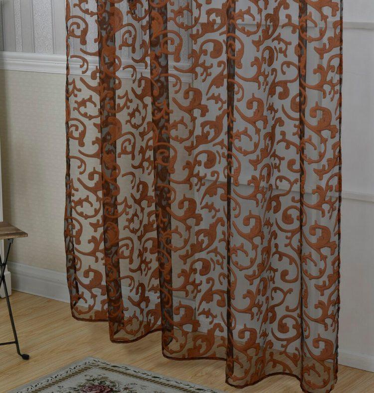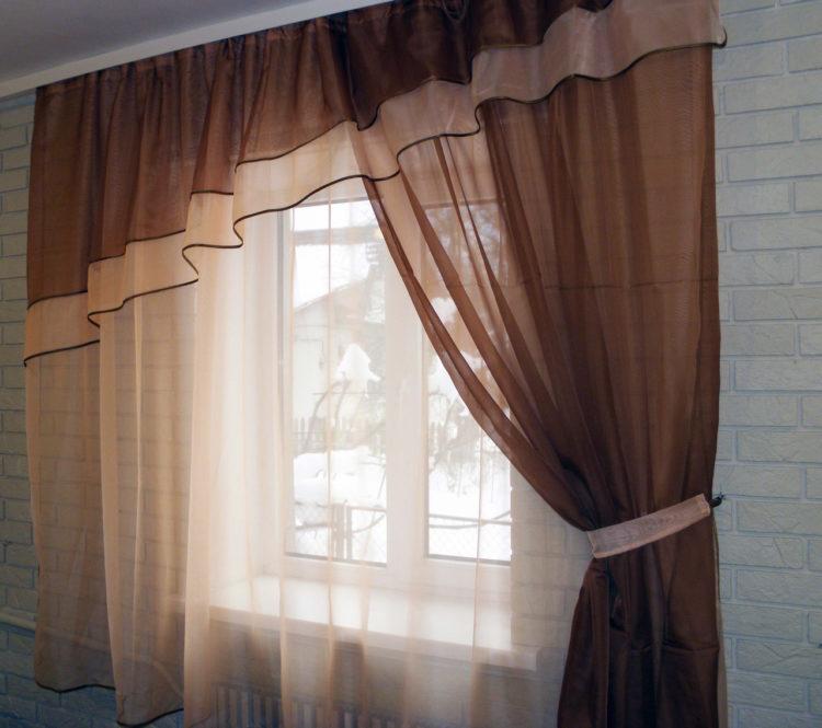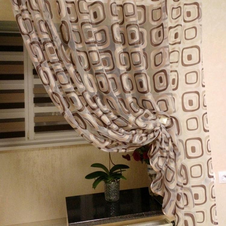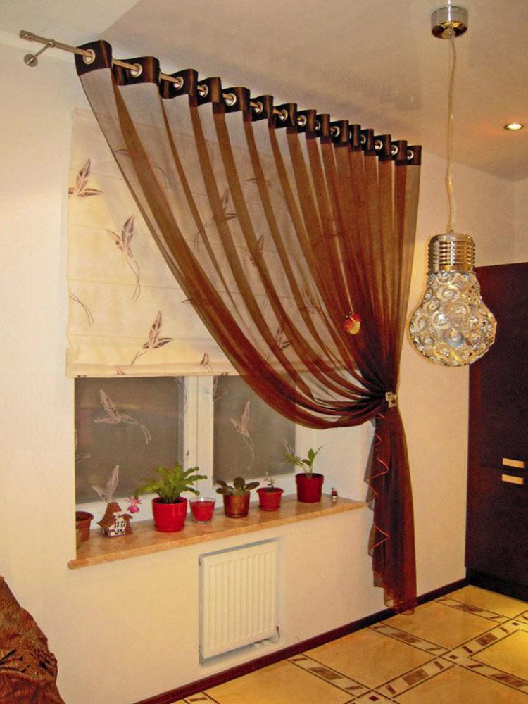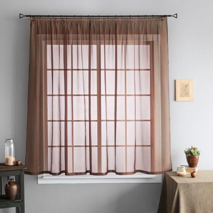 Independientemente de si elige el tul en la cocina, corto o largo en marrón, debe usarse en una habitación grande. Es difícil recoger un tul marrón y cortinas en la cocina (las fotos se adjuntan a continuación) de un tamaño pequeño, porque entonces la habitación parecerá sombría y visualmente más pequeña.