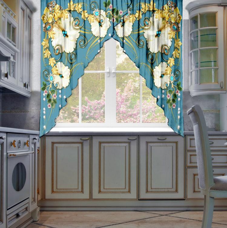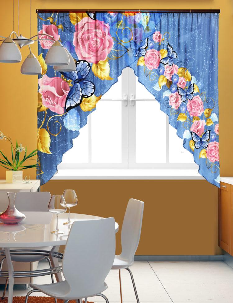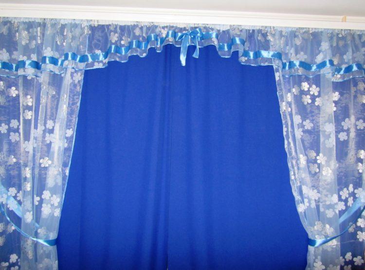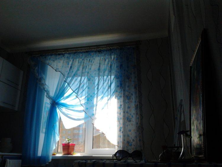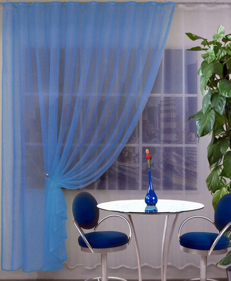 El tul azul corto a la cocina, cuya foto se puede ver en la selección, combina bien con el estilo marino o es adecuado para aquellos que tienen ventanas de cocina orientadas al sur. Los tul azules en la cocina (la foto a continuación lo confirma) se ven muy elegantes y frescos.