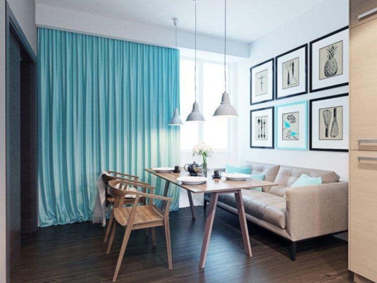 Si tiene un tul oscuro, la cocina puede verse un poco sombría, por lo que se recomienda diluir las cortinas oscuras con algunos colores más claros.