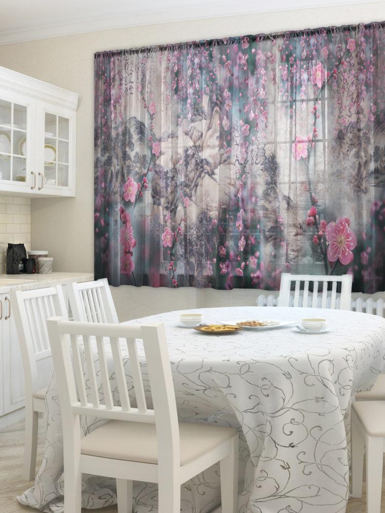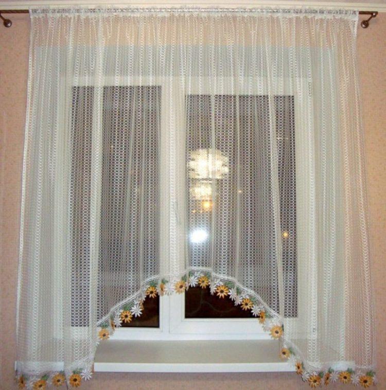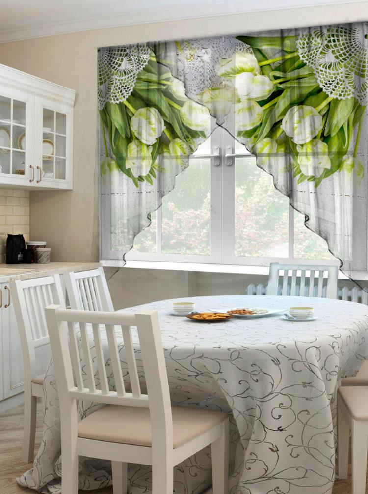 El tul corto o largo para la cocina a menudo está hecho de organza, y la rejilla también se puede usar en la cocina, que es ligera y permite suficiente luz natural, lo que hace que la cocina sea acogedora y brillante. Al elegir cortinas de tul para la cocina, es importante adivinar con el esquema de color. Si el diseño interior de su cocina contiene varios elementos pequeños, entonces es mejor elegir un tul liso. Cuando la cocina está en tonos sobrios y sin dibujos ni adornos, puede elegir cortinas en colores saturados o con dibujos.