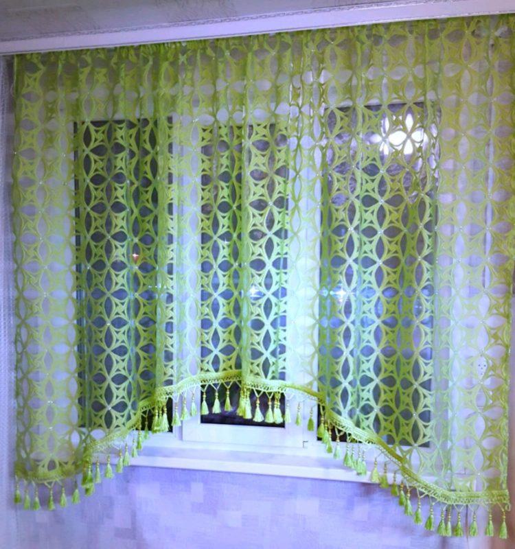 En este último caso, debe ser lo más cuidadoso posible, porque si tiene tantos elementos pegadizos en la cocina, no debe elegir un tul brillante con un patrón, de lo contrario el interior se verá insípido. Dado que la anfitriona pasa mucho tiempo en la cocina, primero que nada debería estar tan cómoda. Esta comodidad puede crear diferentes elementos de decoración, incluido el tul. Por lo tanto, no ponga en primer lugar el estilo y la originalidad, y solo entonces la comodidad. Elija un color de tul que sea agradable a la vista. Sugerimos a continuación para ver otro detalle de la foto de tul para la cocina y decidir su elección.