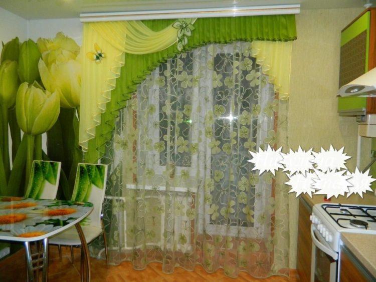 El tul de cocina verde en el interior de la cocina puede parecer bastante interesante, pero debe combinarse con el diseño general de la habitación. A continuación se presentan interesantes tul y cortinas para la cocina: fotos, noticias e ideas interesantes en verde.
