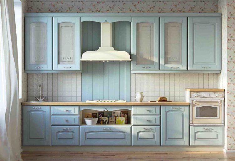 Una cocina azul brillante (diseño, fotos y ejemplos a continuación) será muy acogedora si agrega tonos neutros de azul y azul. También puedes usar blanco.