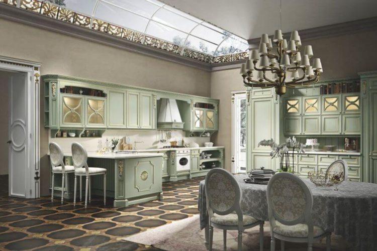 Acogedora cocina en verde