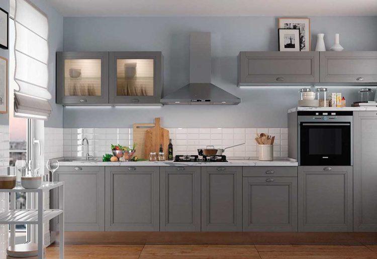 Para descubrir cómo diseñar una cocina de manera económica y hermosa, vea la foto a continuación. Esto se puede repetir de forma independiente, y en gris la cocina se verá muy bien.