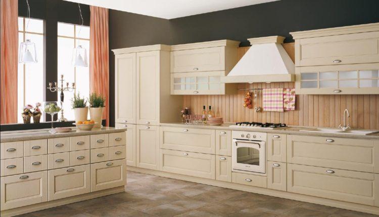 Una pequeña cocina acogedora se verá muy hermosa en color beige y sus tonos. Especialmente en combinación con blanco o marrón.