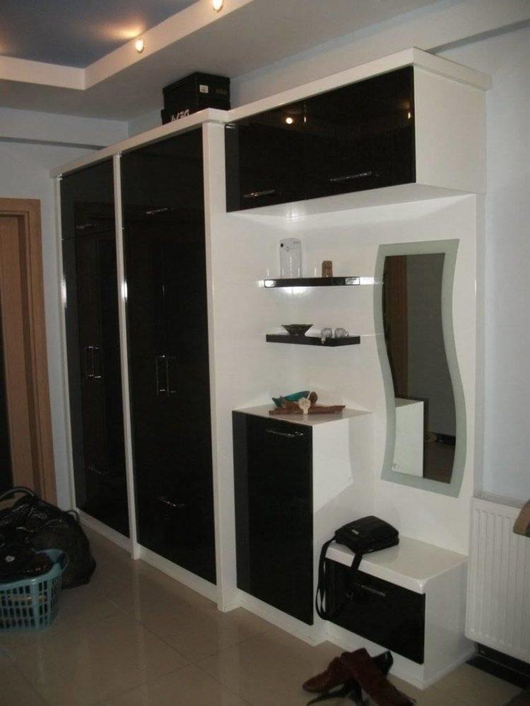 El color negro para el pasillo es una solución inusual que crea un aspecto místico de la habitación. El diseño y el diseño del pasillo negro es un proceso difícil, basado en la selección correcta de la paleta. El uso obligatorio de detalles y acabados de diseño ligero hará que la habitación sea elegante y no sombría. También el diseño negro se puede utilizar en muebles, techos o como revestimiento de pisos. Diseño de pasillo pequeño en negro en la foto: