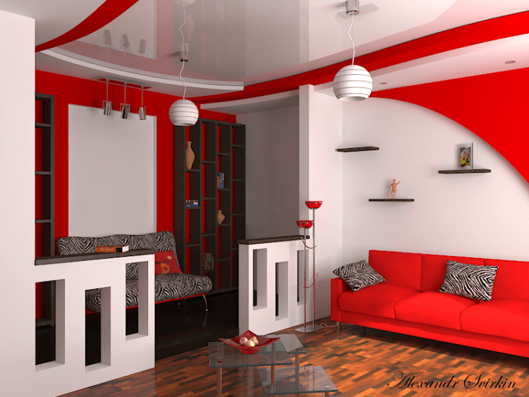 Con la ayuda del color, es fácil cambiar visualmente la forma y el tamaño del espacio. Cuanto más pequeña sea la sala que se diseñará, más colores claros y cálidos se utilizarán para ello. Se utilizan no más de tres, y la principal cuenta con hasta el 65% del espacio que se está diseñando, los auxiliares - hasta el 30%, el resto - acentos brillantes.