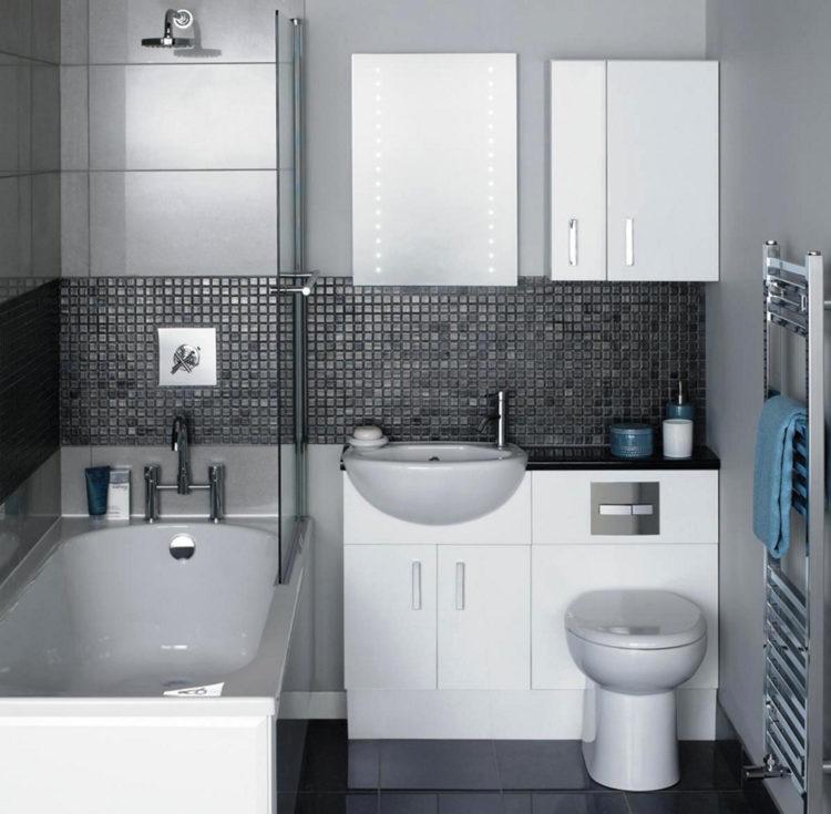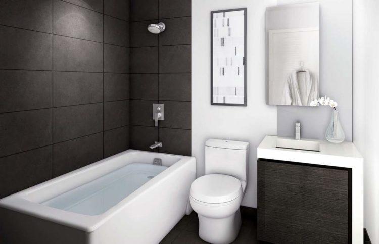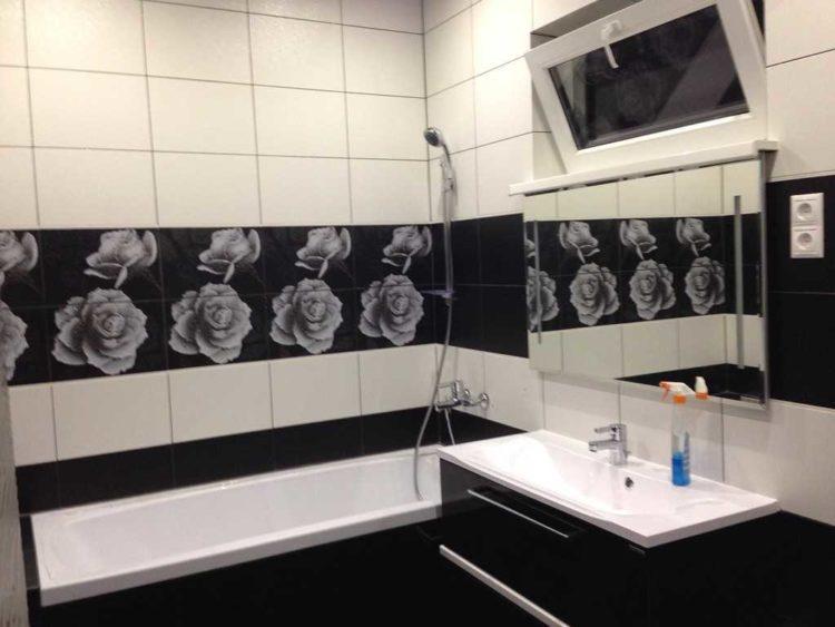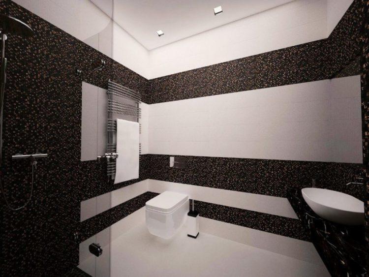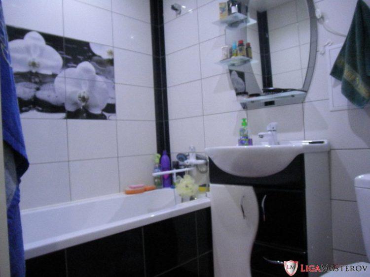 Por las mañanas, nos vigorizamos y ganamos energía y fuerza bajo una ducha de contraste, y por las noches nos relajamos en un baño tibio después de un ajetreado día de trabajo. En este sentido, el negro es uno de los colores más exitosos para decorar un baño, por lo que, por un lado, ayuda a concentrarse y, por otro, relaja y pacifica. Además, el color negro le da rigor y nobleza a la habitación. Un baño en Jruschov (foto después de la reparación, ver más abajo) se ve mejor cuando se combina con negro y otros colores.