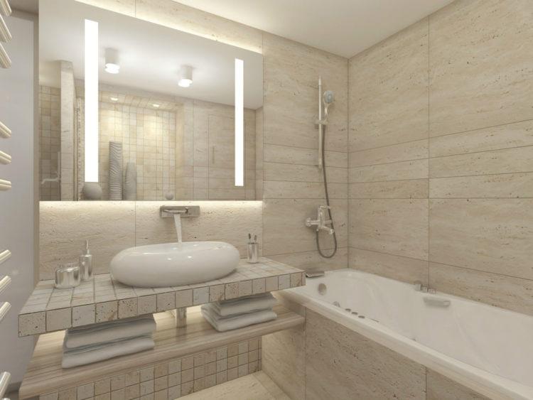 Otra opción universal. Beige será un gran telón de fondo para otros colores, mientras que existe cómodamente solo, creando una atmósfera de lujo real. Es menos pegadizo que el blanco, y la habitación en tonos beige resultará más tierna. Al realizar una renovación del baño en la foto de Jruschov, se selecciona principalmente el beige para terminar el piso, el techo, las superficies y los textiles.