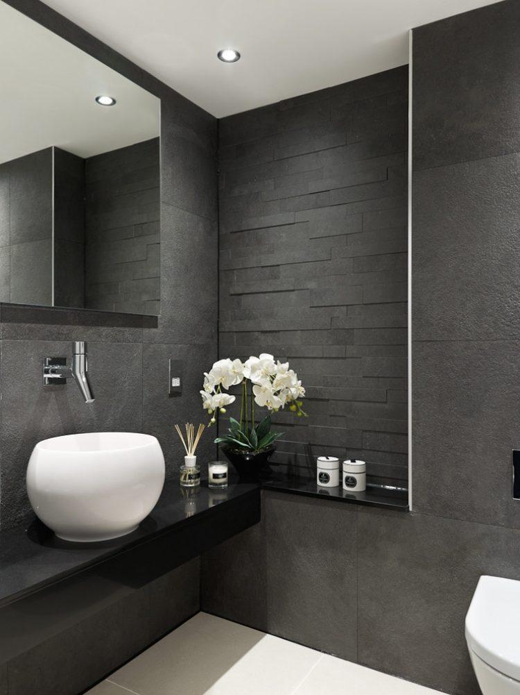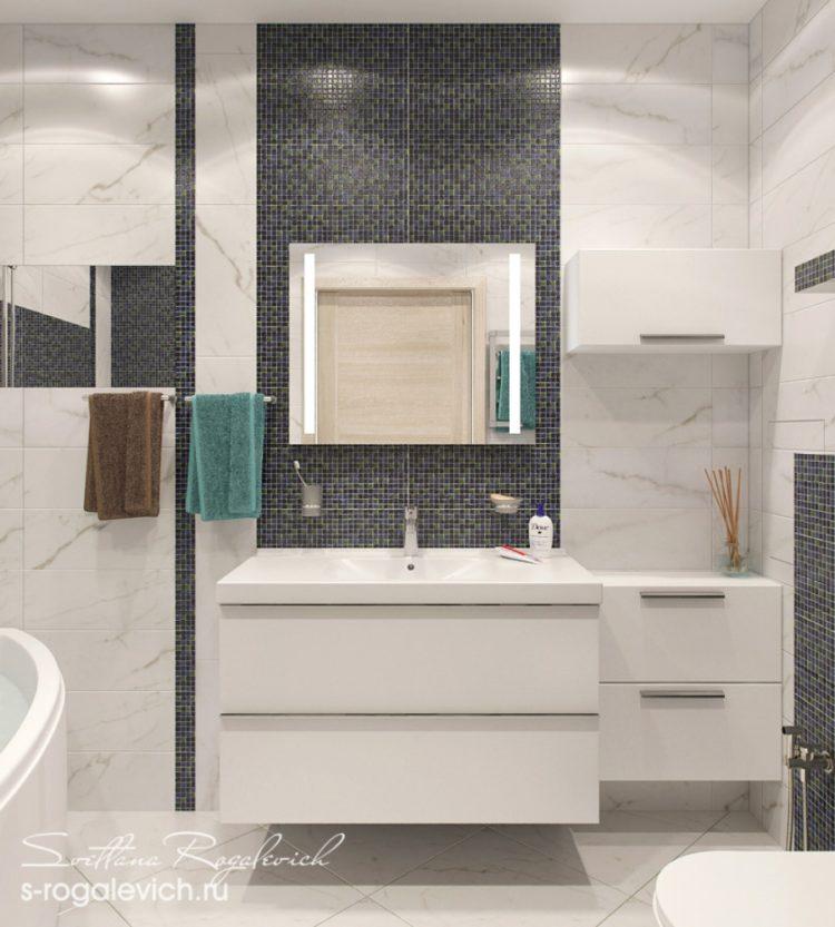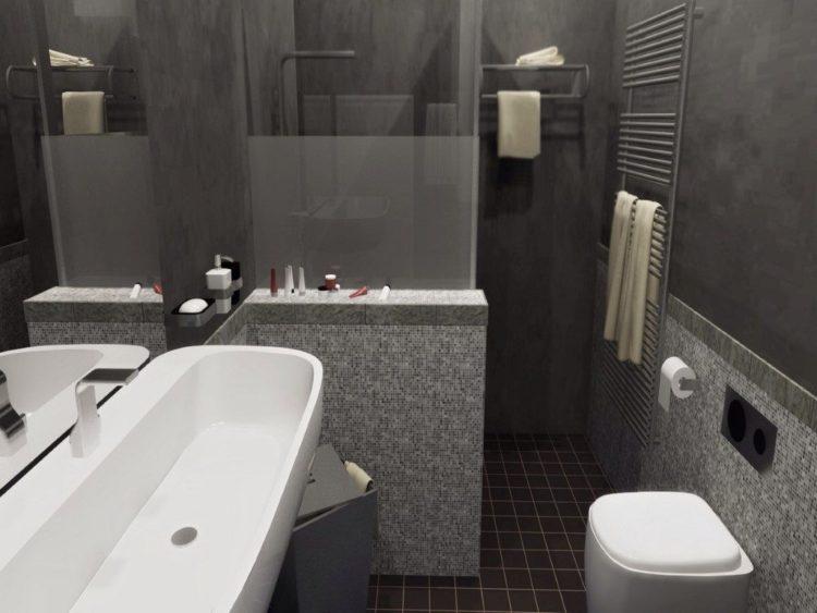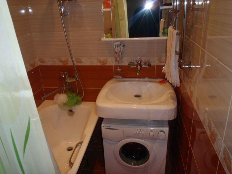 Como sabe, los colores oscuros reducen significativamente el espacio de una habitación, así que tenga cuidado al elegir un diseño oscuro. Pensando en el diseño del baño en Jruschov con una lavadora, use inserciones oscuras para crear el efecto de profundidad, resaltar zonas o expandir visualmente la habitación.