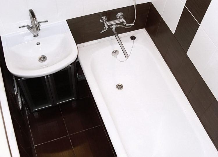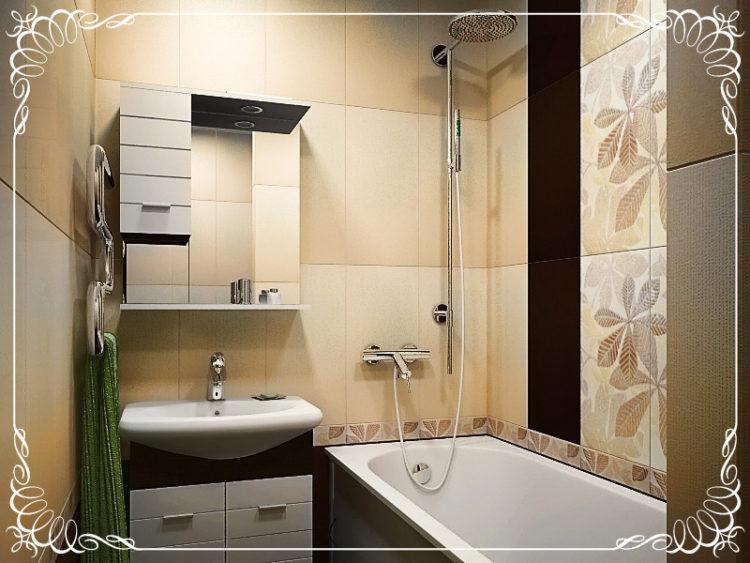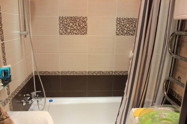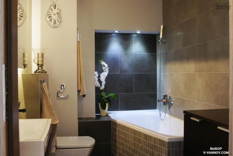 No agota sus ojos, pero crea una sensación de calma y tranquilidad. El interior en tonos marrones nobles no molesta durante mucho tiempo, es suficiente cambiar de vez en cuando varios accesorios pequeños. Baño en la foto de reparación de Jruschov: