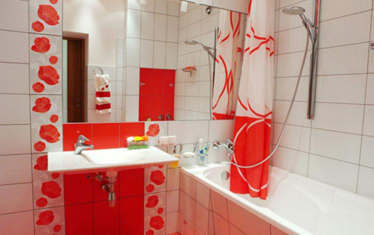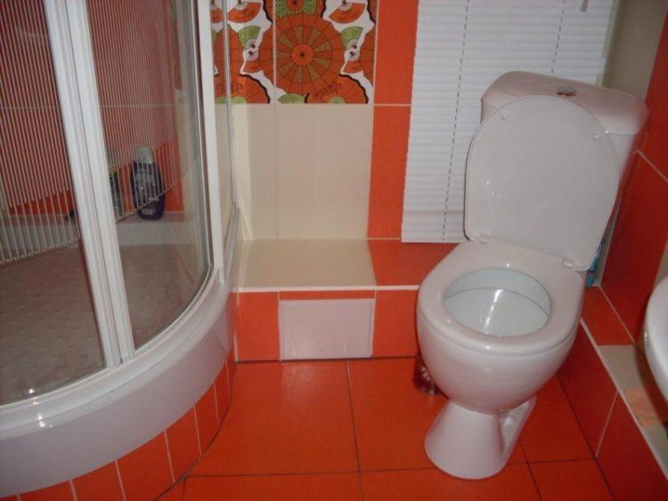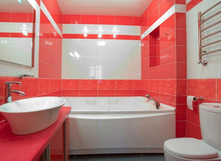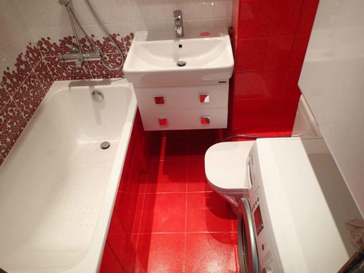 Al reparar un baño en Jruschov, recuerde que la combinación de negro y rojo es la combinación de colores más apasionante que pueda imaginar. En el interior, el baño combinado en Jruschov, pintado en rojo, crea una sensación de lujo, riqueza y calidez.