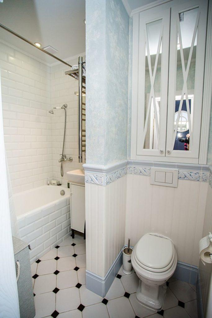 Todo lo que se requiere de usted es planificar cuidadosamente la ubicación de cada elemento y elegir los mejores modelos de plomería. El uso adecuado del color y los espejos también ayudará a expandir visualmente el espacio. El diseño del baño en Jruschov debe ser ligero y agradable.