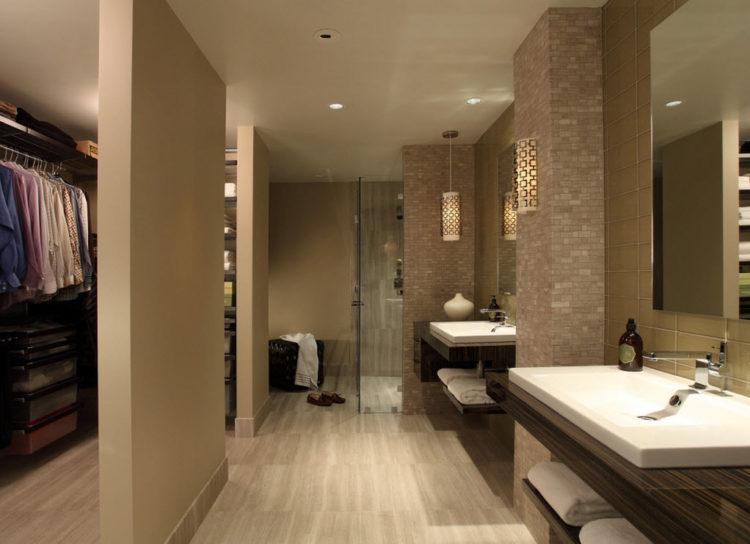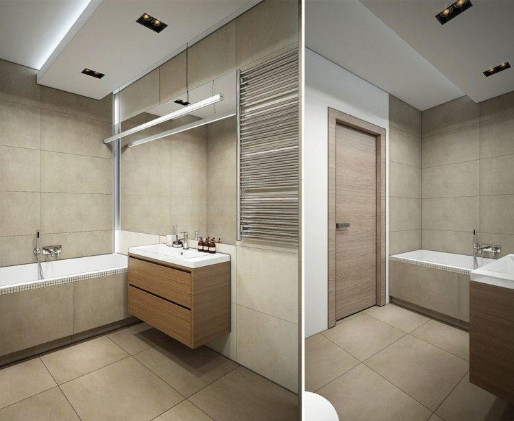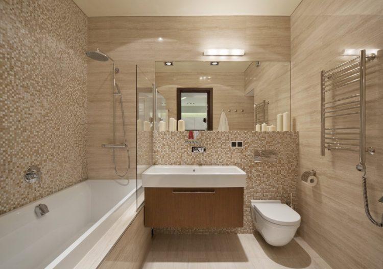 Los tonos beige como base no se usan con tanta frecuencia en este estilo. Es bastante difícil crear un estilo loft beige cálido en el baño; se recomienda utilizar numerosos elementos decorativos que enfaticen la severidad y el estilo industrial.