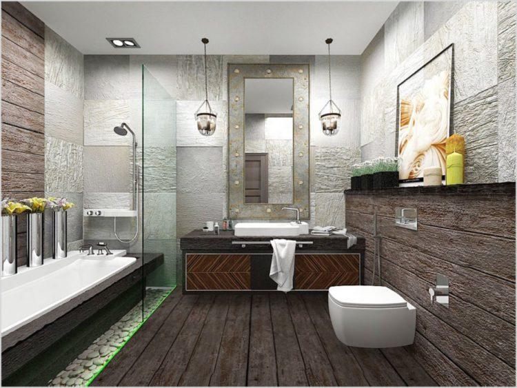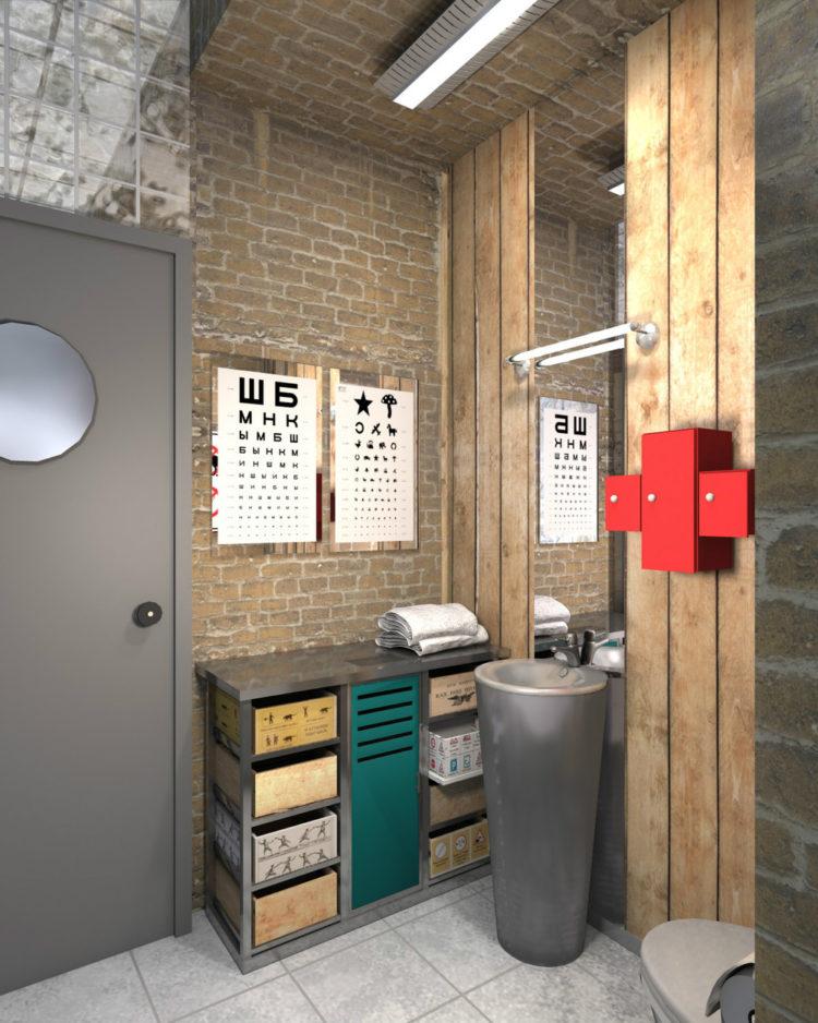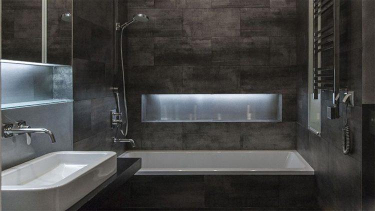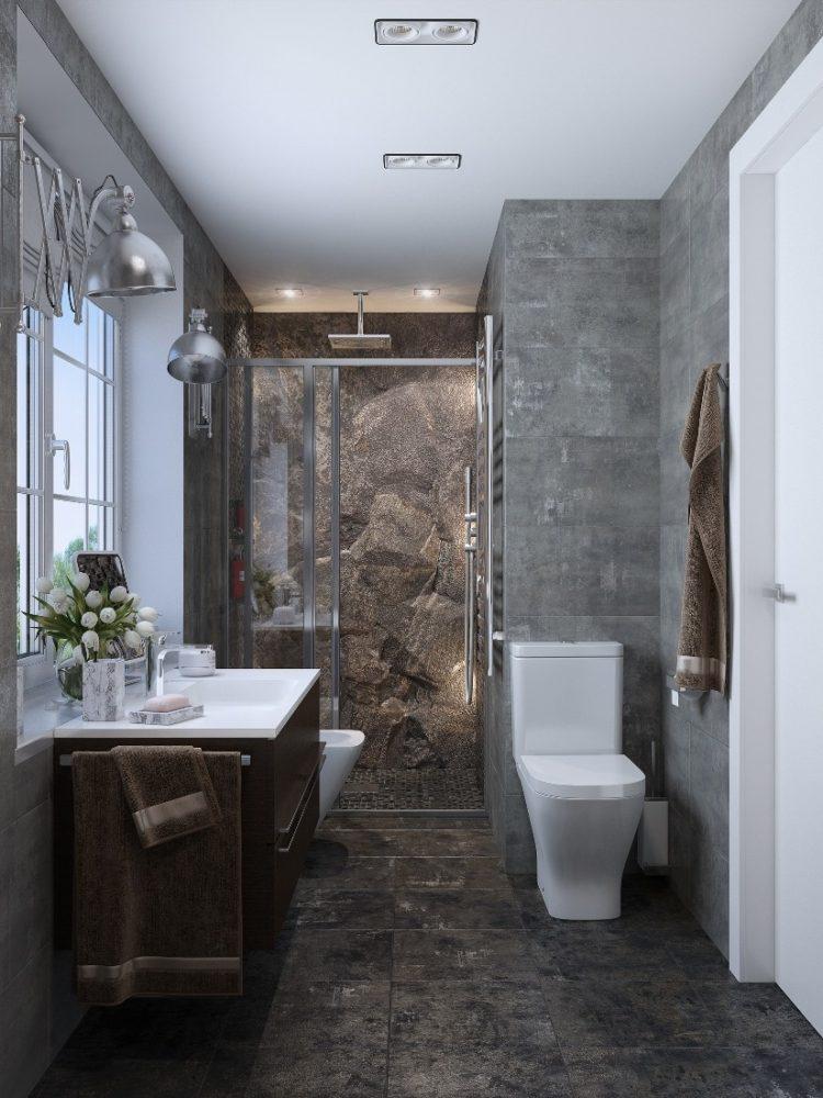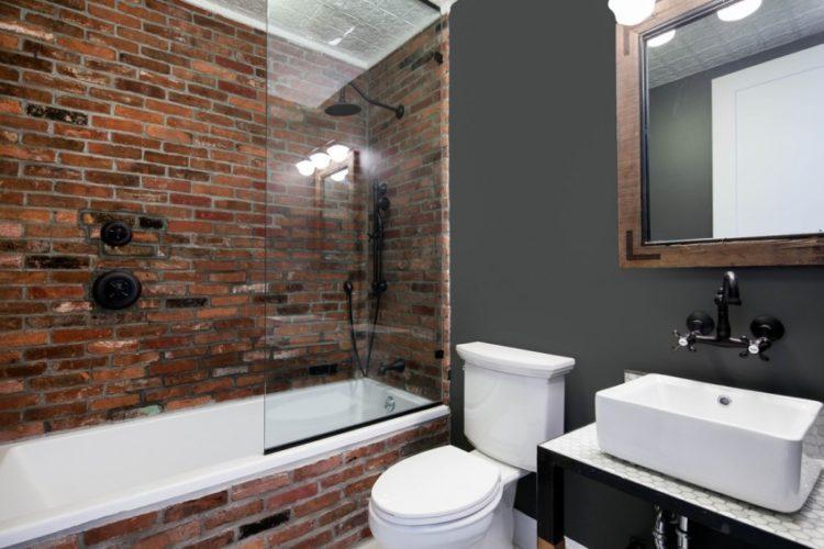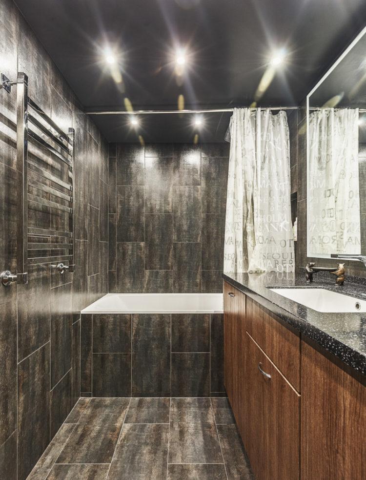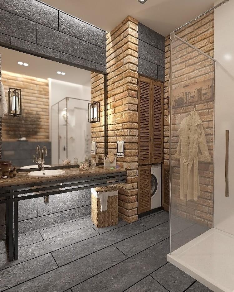 Este estilo se caracteriza por el uso de colores de los principales materiales utilizados. En su mayor parte, estos son tonos oscuros de piedra, ladrillo, madera y metal. Al hacer un baño tipo loft en colores oscuros, no olvide hacer acentos brillantes, lo que lo hace más saturado e interesante.