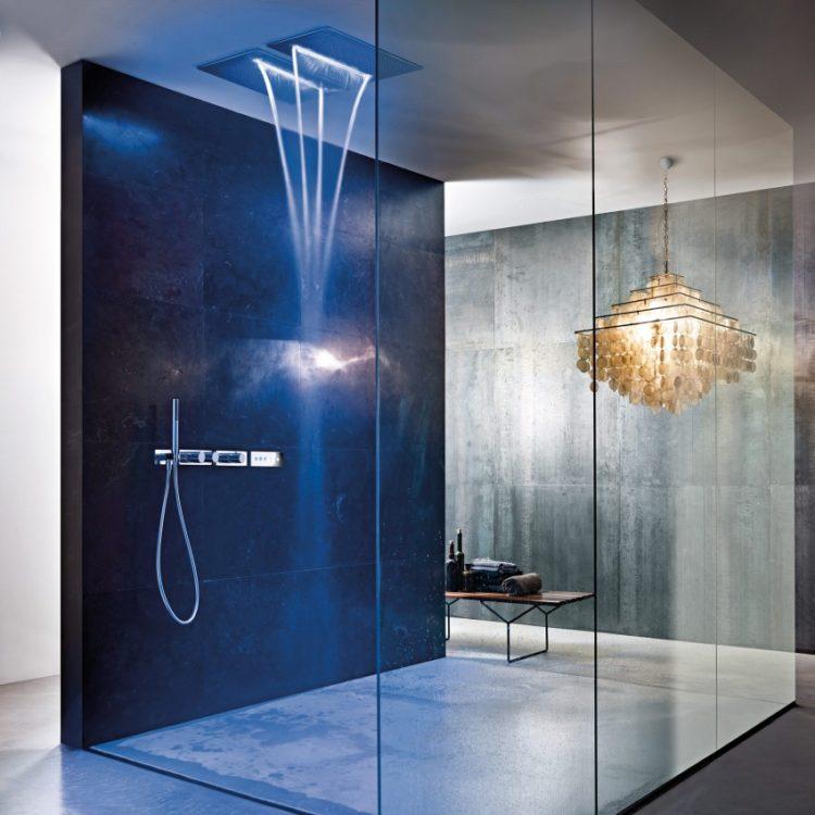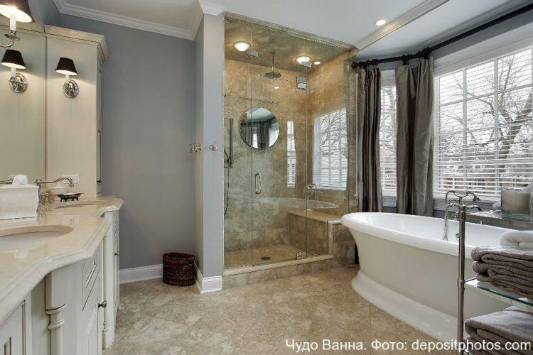 La última opción es un baño tipo loft sin patas. Si se trata de un baño con ducha en estilo loft, se realiza sin paletas y cortinas de vidrio, lo que se ve muy impresionante en Jruschov con sus techos altos. La cabina de ducha debe estar abierta, la ducha y la batidora pueden estar tanto en la pared como en el techo. Un elemento importante que debe incluir un baño en el estilo loft es el espejo. Incluso si tiene un baño pequeño, debe ser bastante impresionante en tamaño.
