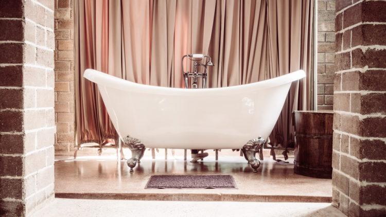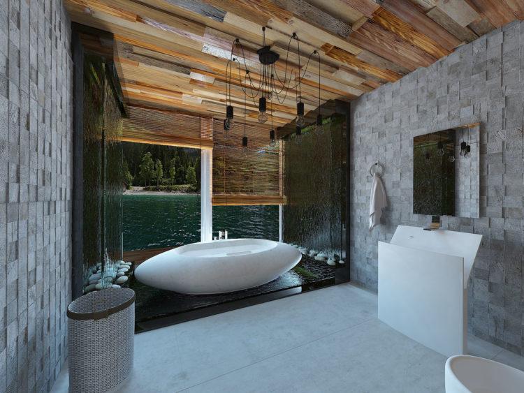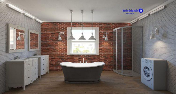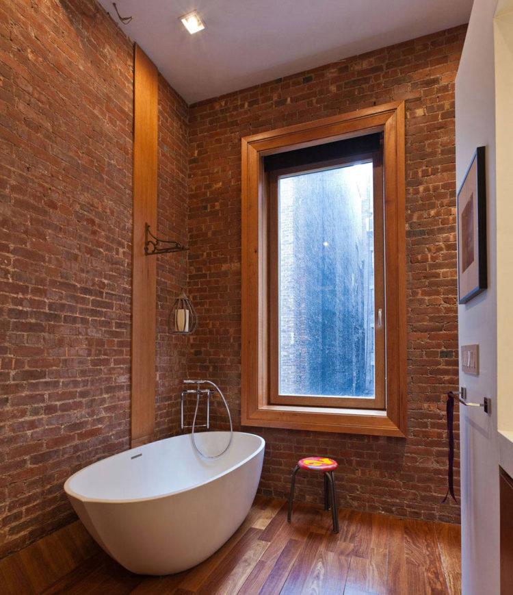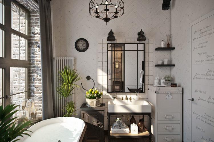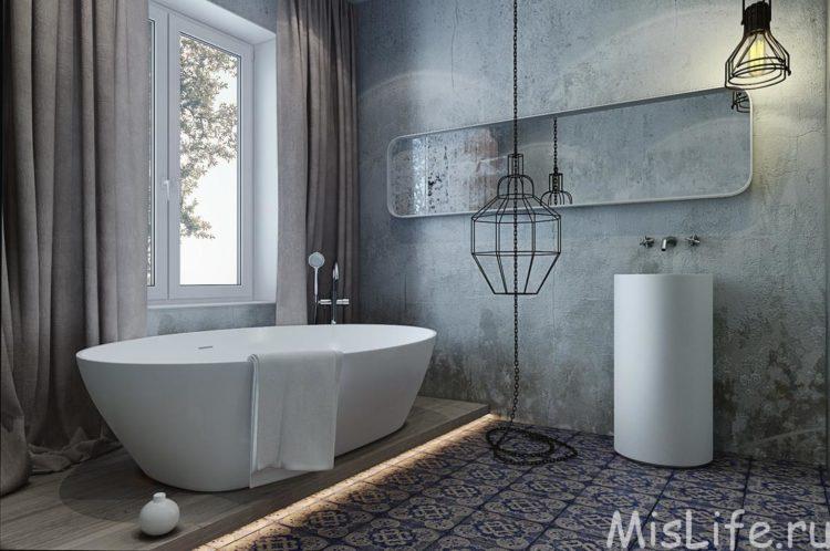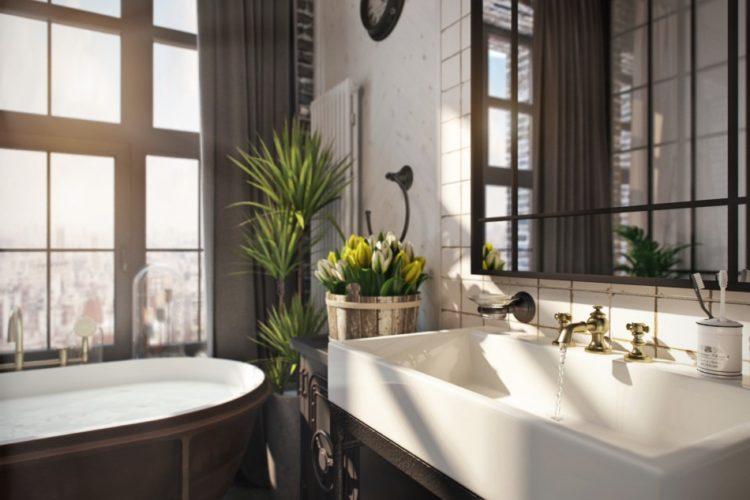 Plomería en el estilo loft debe ser simple y conciso. La bañera tipo loft puede ser empotrada o independiente.