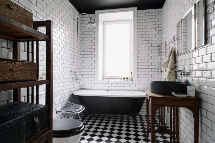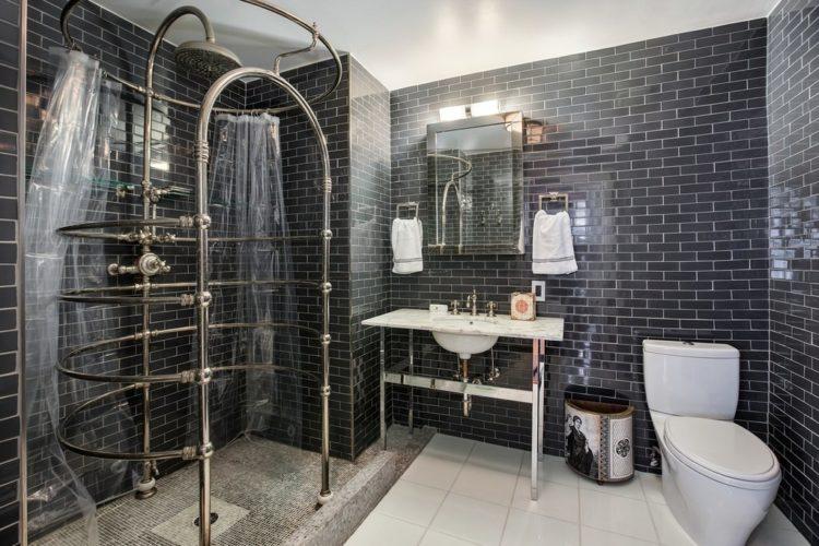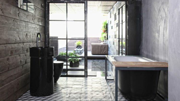 El negro es uno de los colores básicos que usan los diseñadores cuando crean un interior de manera competente. Al planificar un baño tipo loft en negro, a menudo se usan otros tonos brillantes para crear acentos de color. Una combinación de negro y gris se considera exitosa, todo lo cual se puede observar en las fotos propuestas.