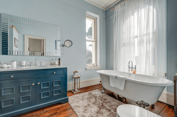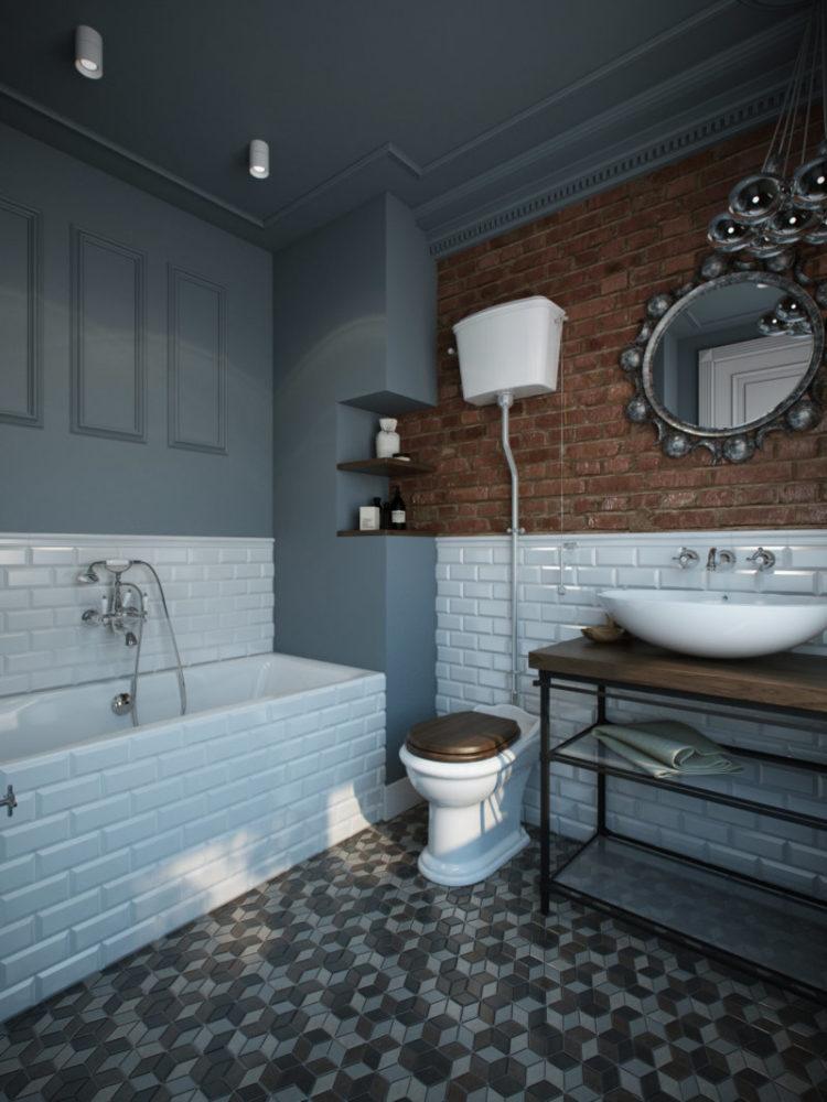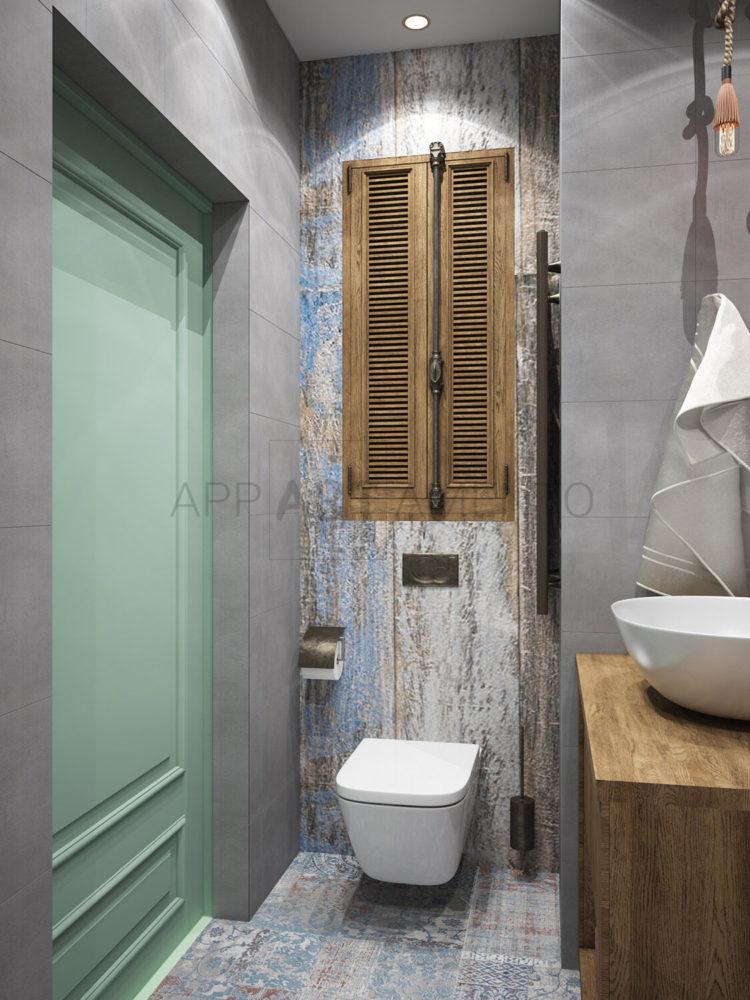 Los baños tipo loft no suelen estar decorados en este color. Por lo general, se combina con negro o gris, con tonos oscuros y fríos de color verde.