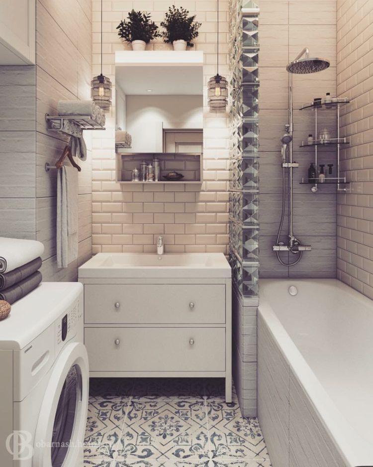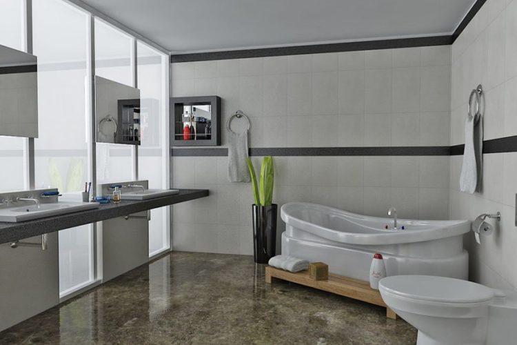 Con el color blanco, puede expandir significativamente los límites del espacio de un baño pequeño. Como regla general, el color blanco se usa en combinación con tonos grises oscuros y negro.