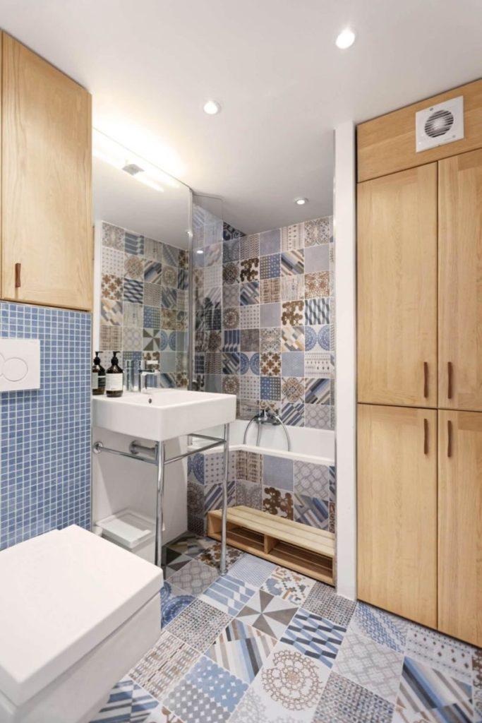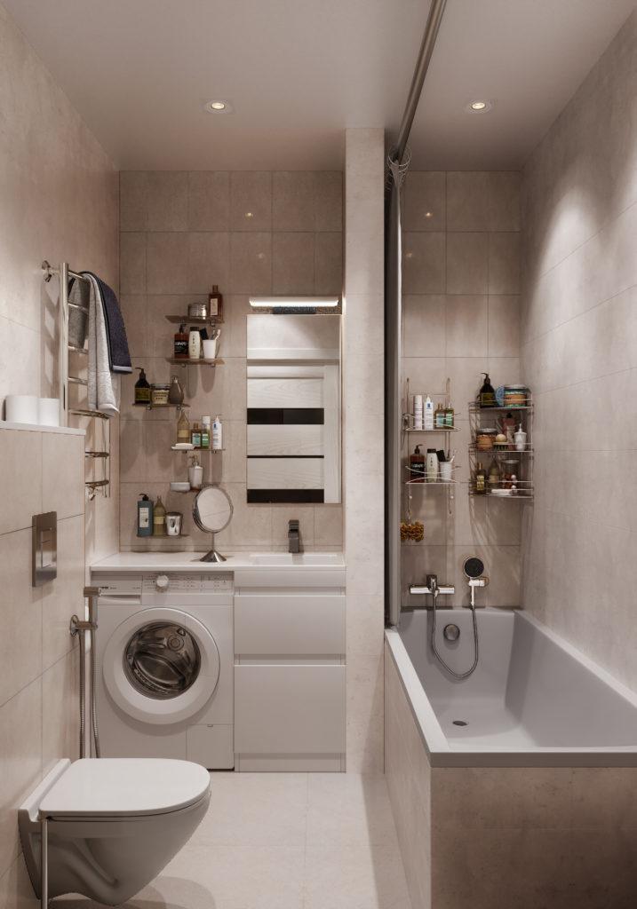 Este esquema de color será una buena solución para un baño de tamaño pequeño. Al realizar reparaciones en colores brillantes, puede expandir visualmente el espacio. Use colores claros de colores fríos y tonos neutros.