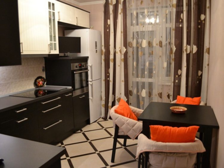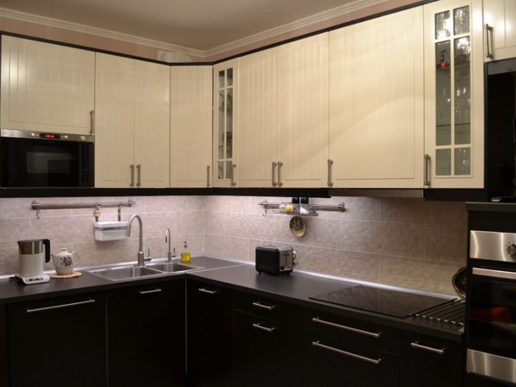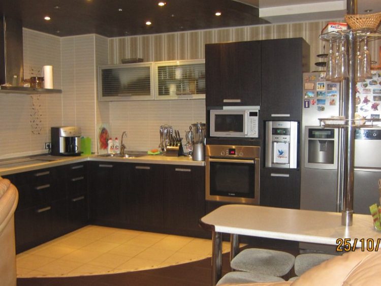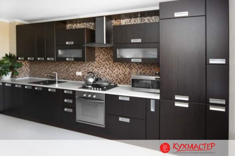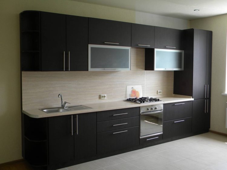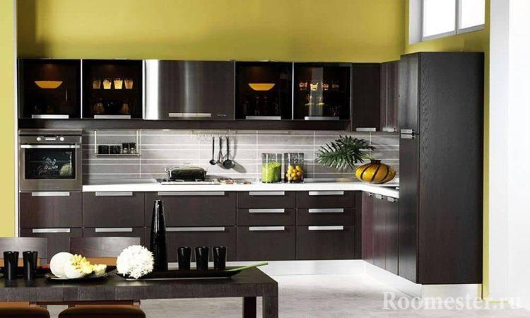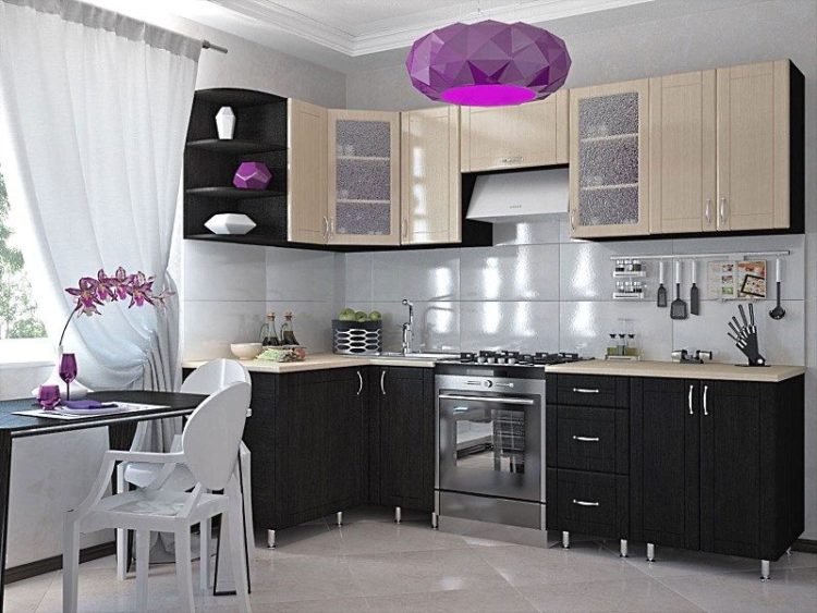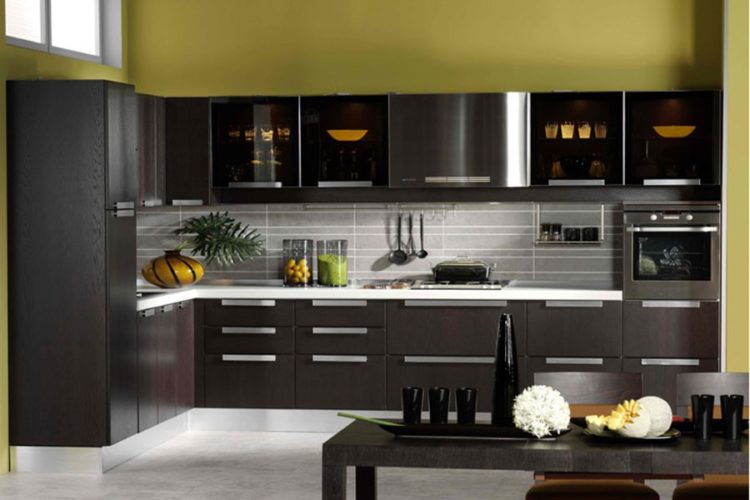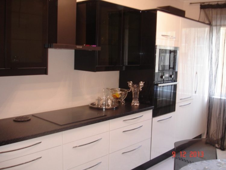 Lo principal aquí es hacer una transición suave de la versión clásica, en la que el color de los muebles de wengué (la foto que verá más adelante) parece perfectamente negro y llama la atención de los invitados. De lo contrario, habrá una imagen borrosa, y no una cocina de wengué negra completa (diseño, combinación de colores y otros matices en la foto).