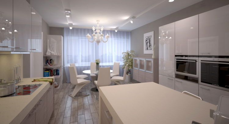 En los muebles y elementos de decoración hechos en estos colores, la suciedad, el polvo, los restos de comida, las manchas y otros momentos desagradables que de alguna manera molestan a cualquier ama de casa son casi invisibles. Otra buena ventaja es la variabilidad en términos de estilización, puede elegir en los esquemas de color anteriores, tanto las opciones de muebles modernos como las más clásicas. A continuación, se familiarizará con lo que constituye una cocina blanqueada, productos lácteos y otras opciones de visualización en las que puede actuar el interior. La siguiente información también se relacionará con la selección de papel tapiz en la cocina.
