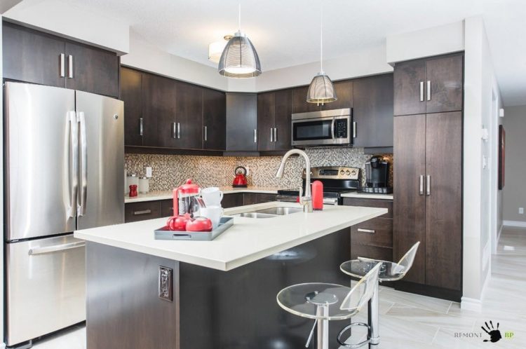 Al mismo tiempo, formando una imagen elegante de su cocina usando el color wengué y vainilla, no se olvide de conocer ejemplos vívidos en las fotografías. A continuación, hemos preparado para usted imágenes que seguramente le darán muchas ideas para la implementación en el hogar.