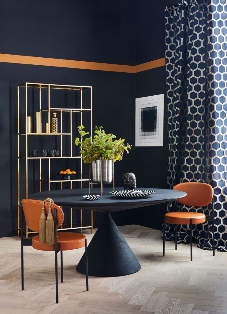 En colores azules, es mejor realizar pequeños elementos de decoración, por ejemplo, colchas para sillas, servilletas o lámparas. El color Wenga se usa mejor debajo de los muebles principales.