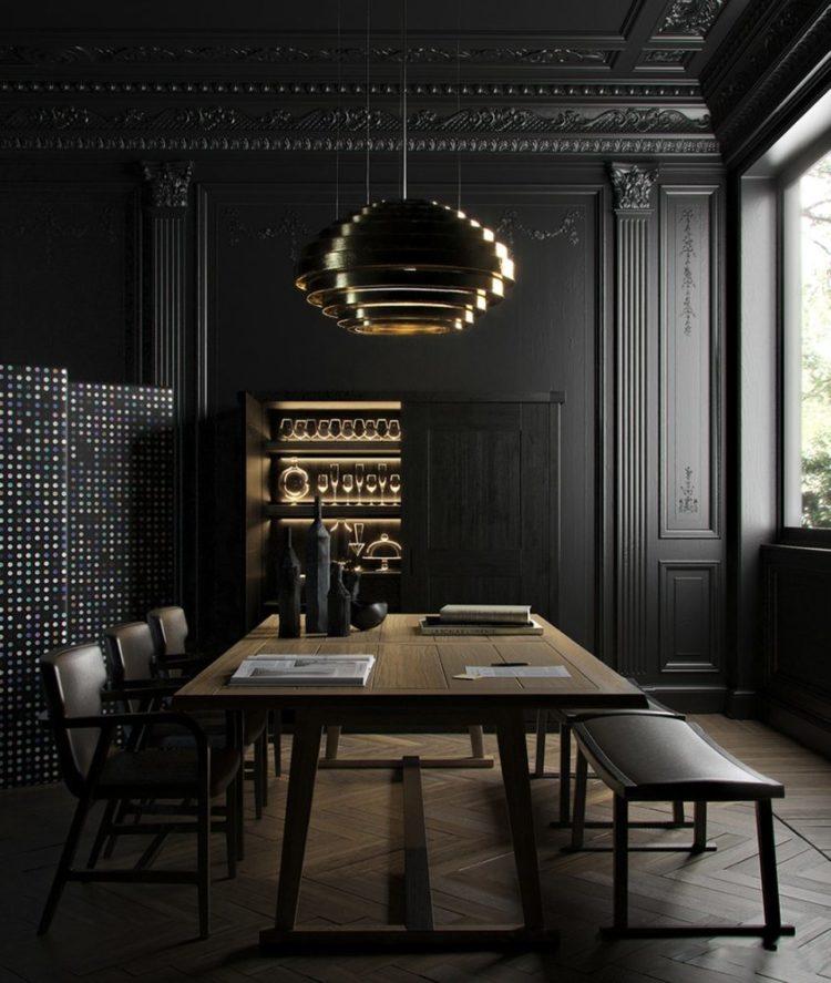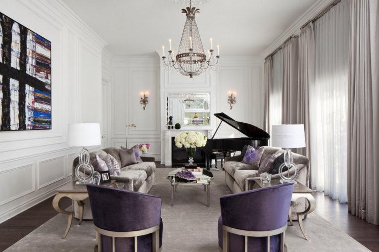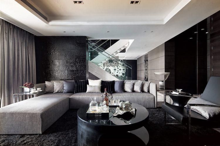 La opción considerada de color con negro creará el ambiente silencioso necesario en una sala grande con techos altos para fiestas y fiestas importantes.
