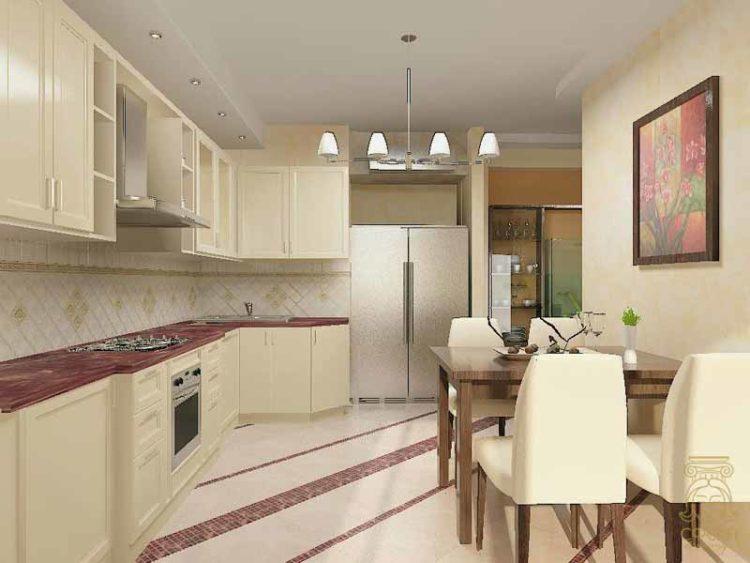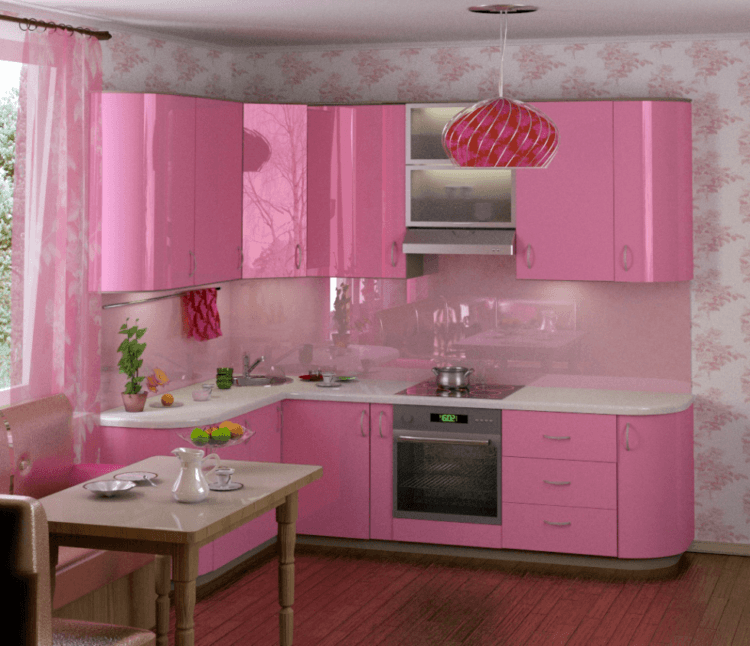 La solución ideal para el dormitorio de la hija es un papel tapiz de color crema con detalles en rosa. El delicado color crema de las paredes creará una atmósfera de amor y comprensión. También te gustará la cocina de color crema con elementos rosas en la decoración.