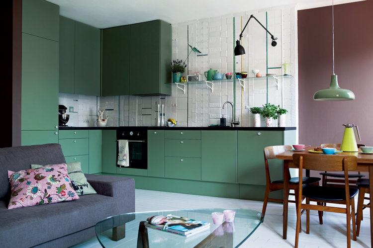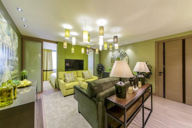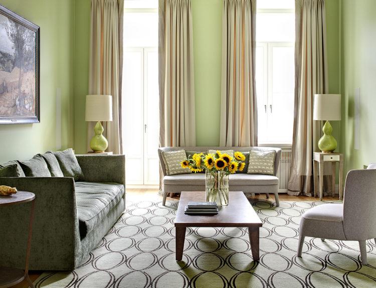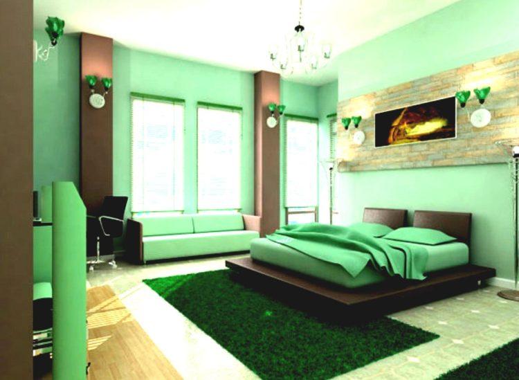 Incluso una pequeña alfombra o colchas en verde refrescarán la atmósfera suave en general.